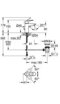 Grohe Einhand-Waschtischbatterie BAUEDGE DN 15, L-Size Chrom