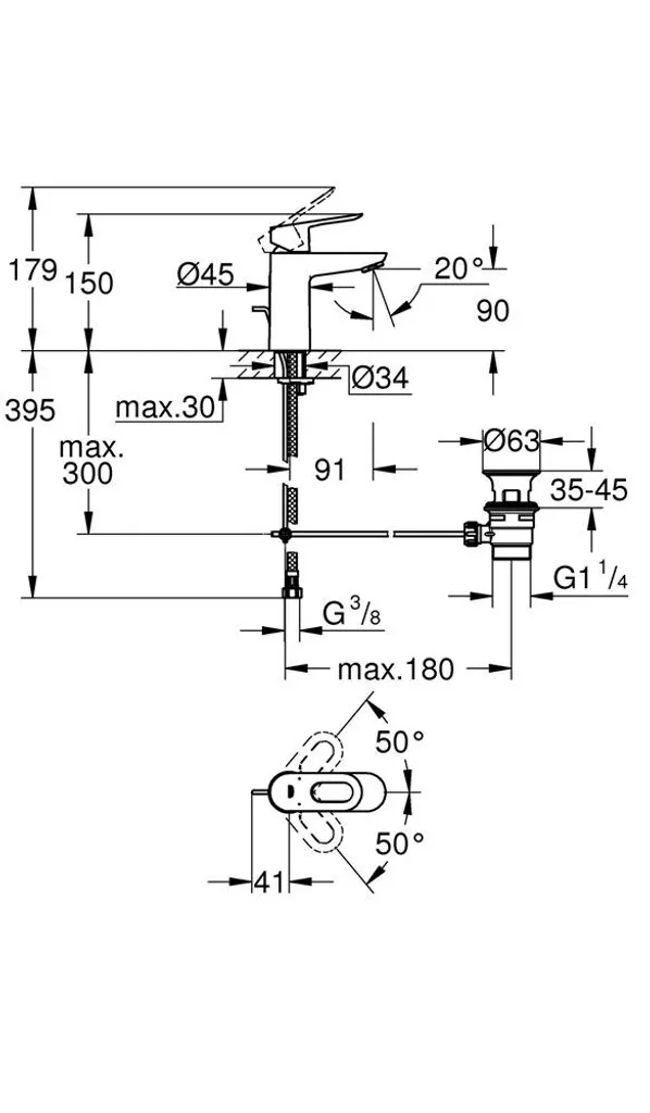 Grohe Einhand-Waschtischbatterie BAULOOP DN 15, S-Size Zugstangen-Ablaufgarnitur 1 1/4″ Chrom