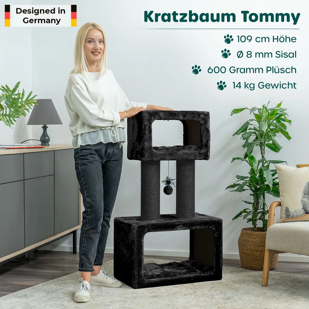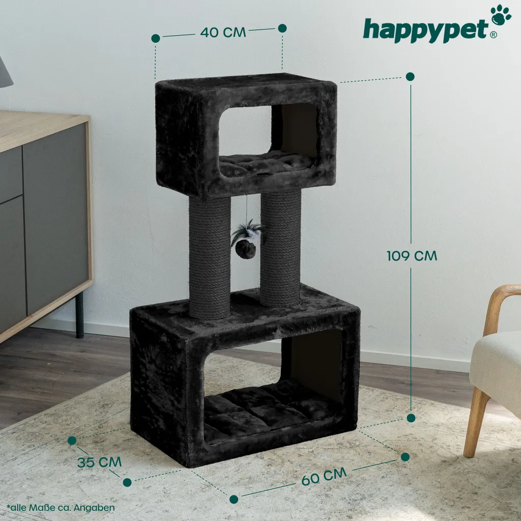 HAPPYPET Kratzbaum Stabil 109 Cm Für Große Katzen | | 12 Cm Sisalstämme Mit 8 Mm Dickem Sisalseil | 600g Plüsch | Kratzbaum Klein Für Schwere Main Coon | E1