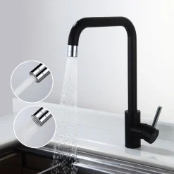 Homelody Küchenarmatur Schwarz Wasserhahn Küche 2 Strahlarten Spültischarmatur 360° Drehbar Einhebelmischer Hochdruck Spülbecken Armatur Mischbatterie Für Küchen, Schwarz