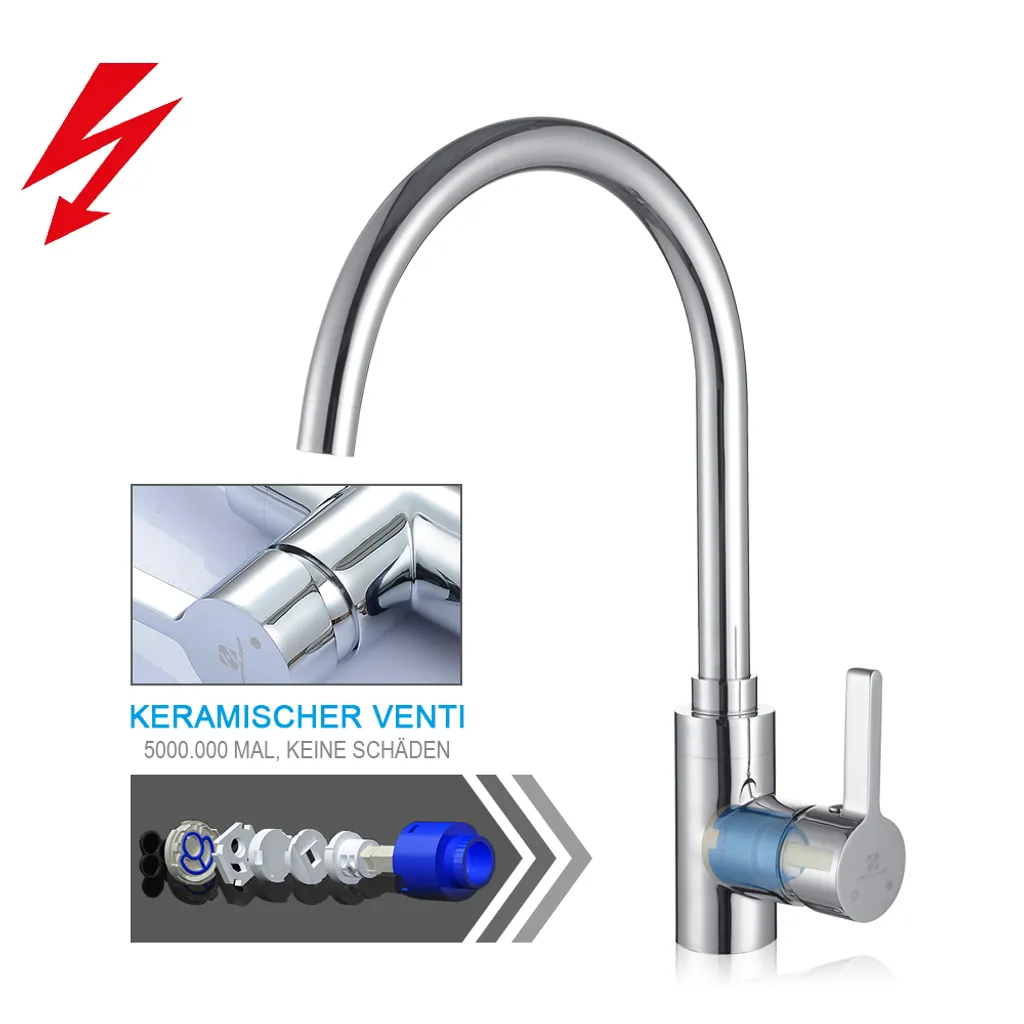 Homelody Niederdruck Küchenarmatur Aus Messing Wasserhahn Küche 360° Drehbar Niederdruck Spültischarmatur Mischbatterie Küche Chrom Armatur Für Boiler