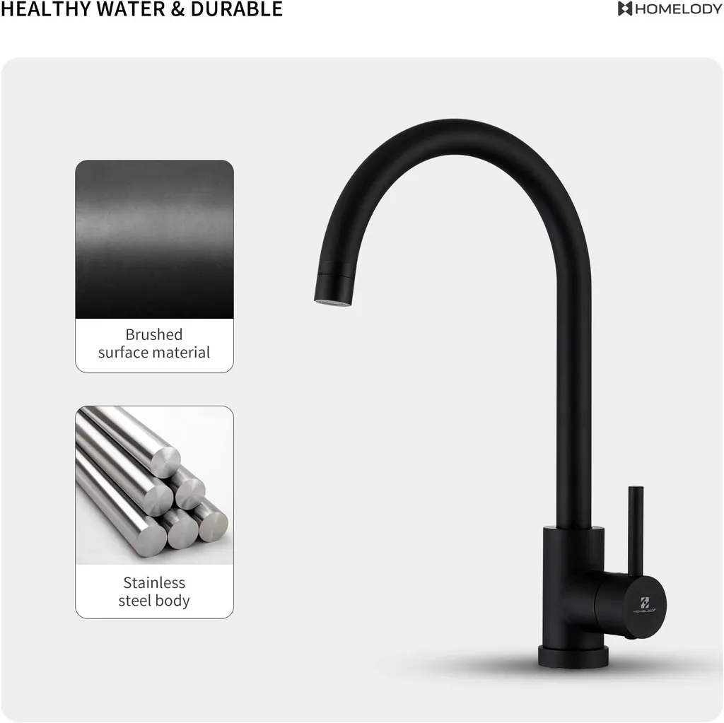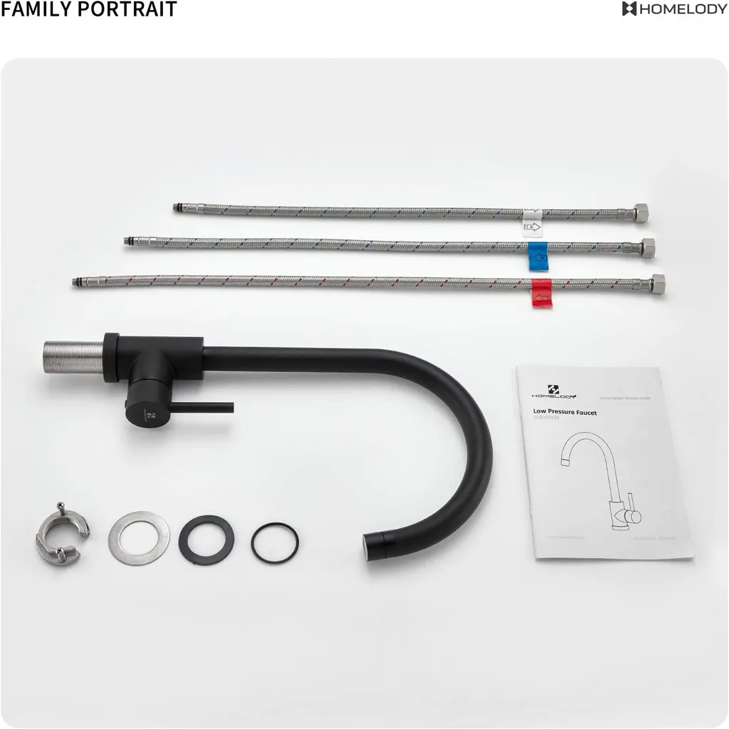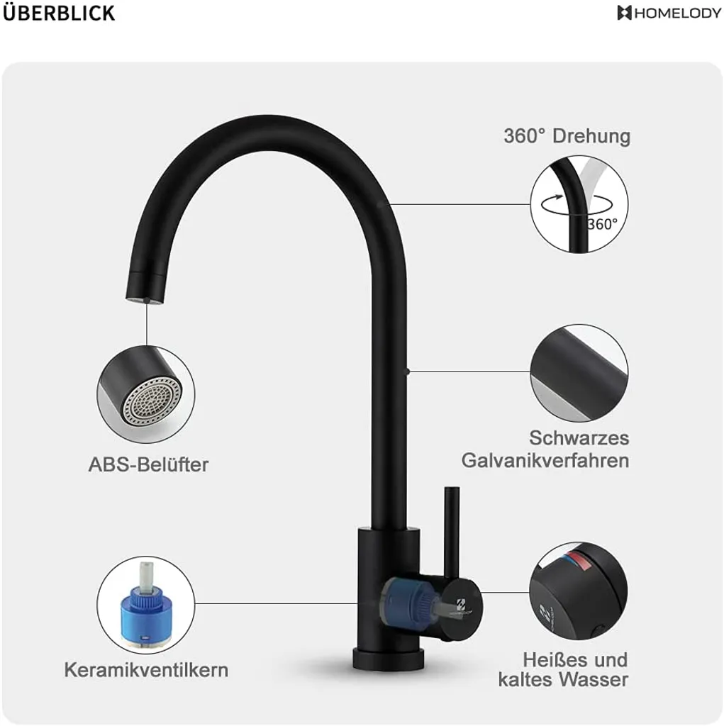 Homelody Wasserhahn Küche 360° Drehbar Niederdruck Küchenarmatur Niederdruck Mischbatterie Küche Armatur Edelstahl Spültischarmatur Für Spüle Boiler, Schwarz