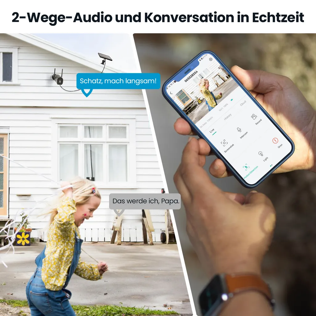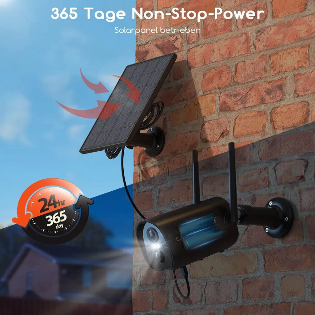 IeGeek 2K Solar Überwachungskamera Aussen Akku, Outdoor Kamera Wlan Mit PIR Bewegungsmelder, Sirene/lichtalarm, Personen/Autoerkennung, Farbnachtsicht, 2-Wege-Audio, Arbeit Mit Alexa, IP65