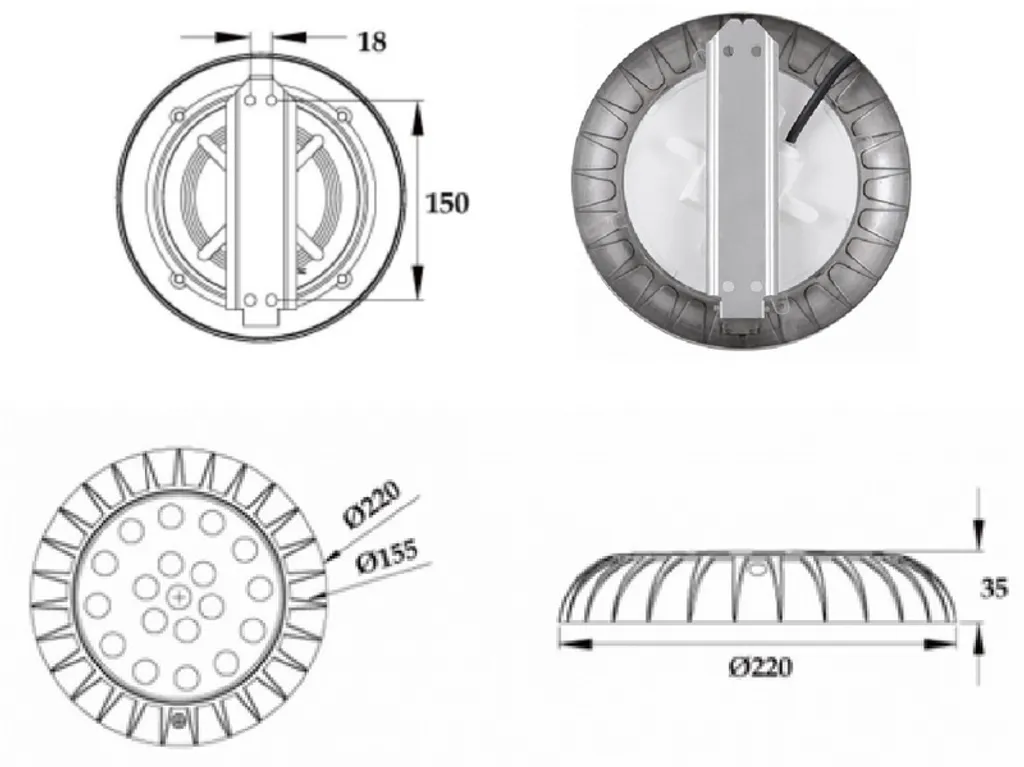 Interline Pool Wandleuchte Für Holz-Pools, Wandleuchte, Grau, LED, Variabel, 230 Mm, 200 Mm