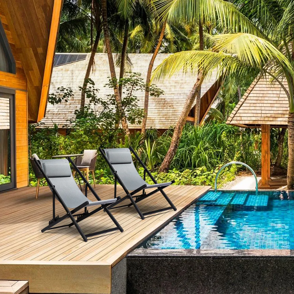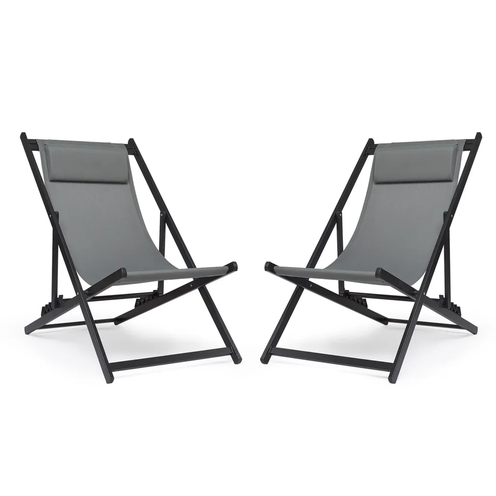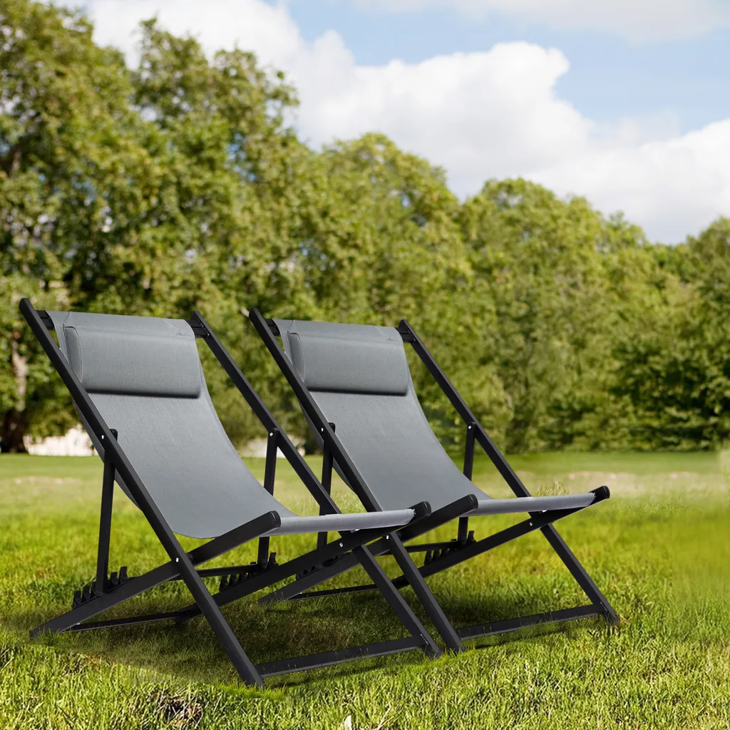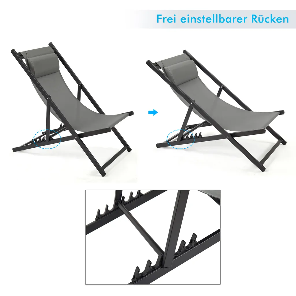 IntimaTe WM Heart Gartenliege, Klappbar, Aus Atmungsaktivem Netz Und Aluminiumrahmen, Mit Verstellbarer Kopfstütze, Dunkelgrau