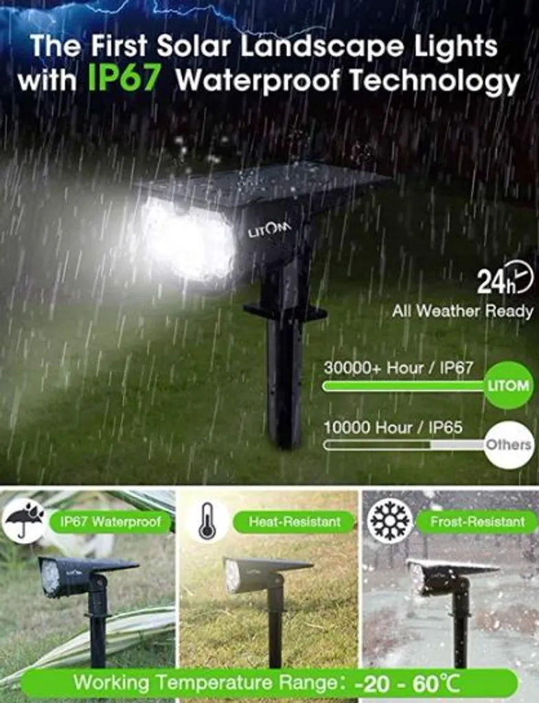 Istartop LITOM 12 LED Solar Flutlichter, IP67 Wasserdichte Wandleuchten 2-in-1 Wireless Outdoor Für Garten Auffahrt Veranda Gehweg Pool Terrasse 2er Pack