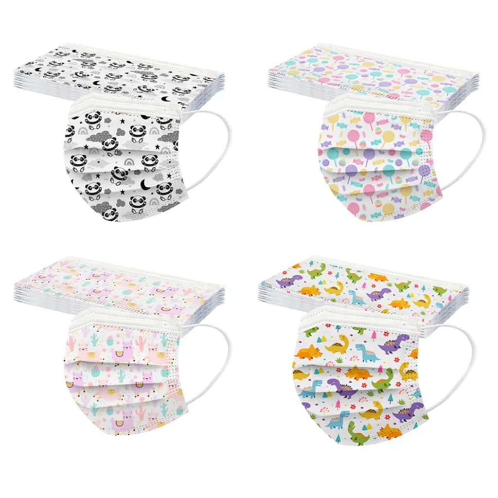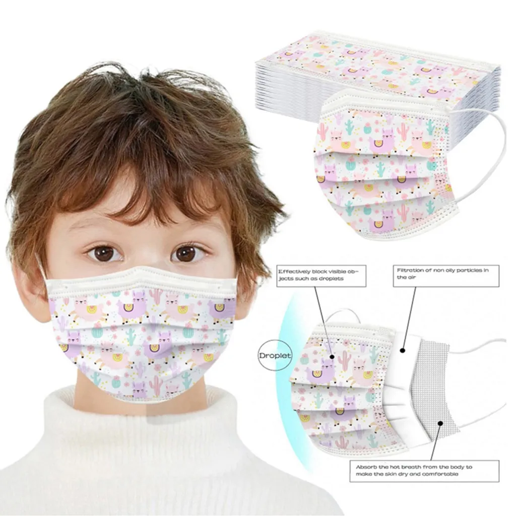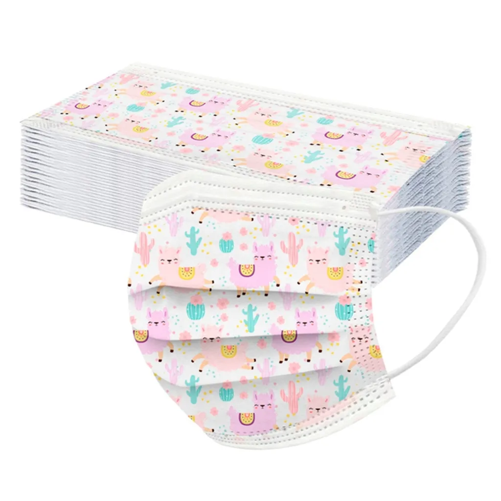 Jefety 50 Stk Atemschutzmasken,Kinder Einwegmasken Gesichtsmaske Einweg-3-lagige Cartoon Alpaca Mundmaske Für Jungen Mädchen