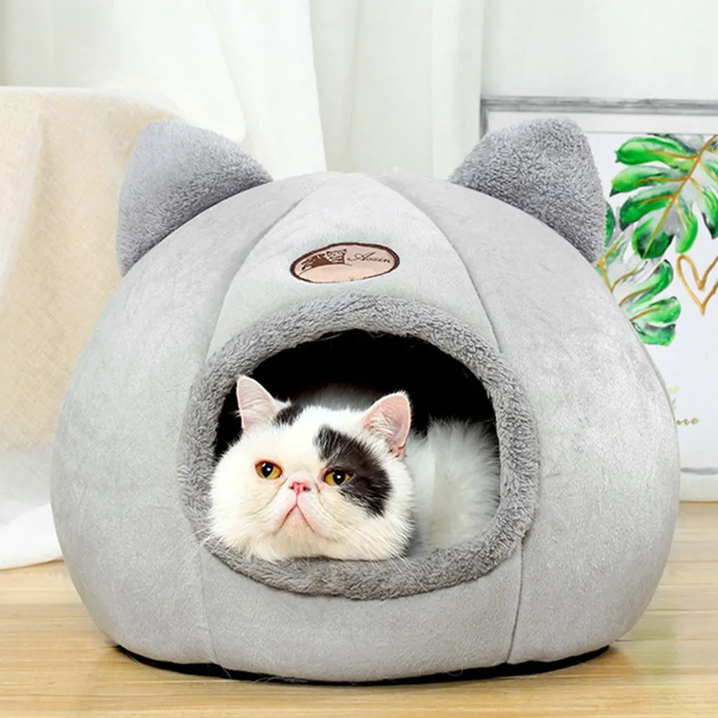 Jinaishop Katzenbett Katzenhöhle Mit Katzenohren Für Große & Kleine Katzen Oder Kleinere Hunde Super Weiches Waschbare Kissen