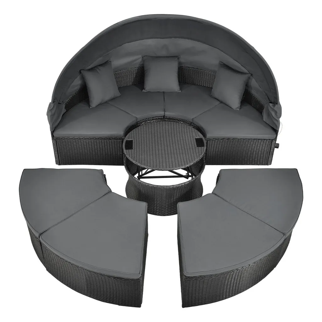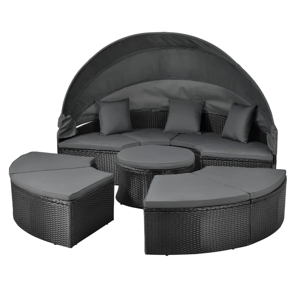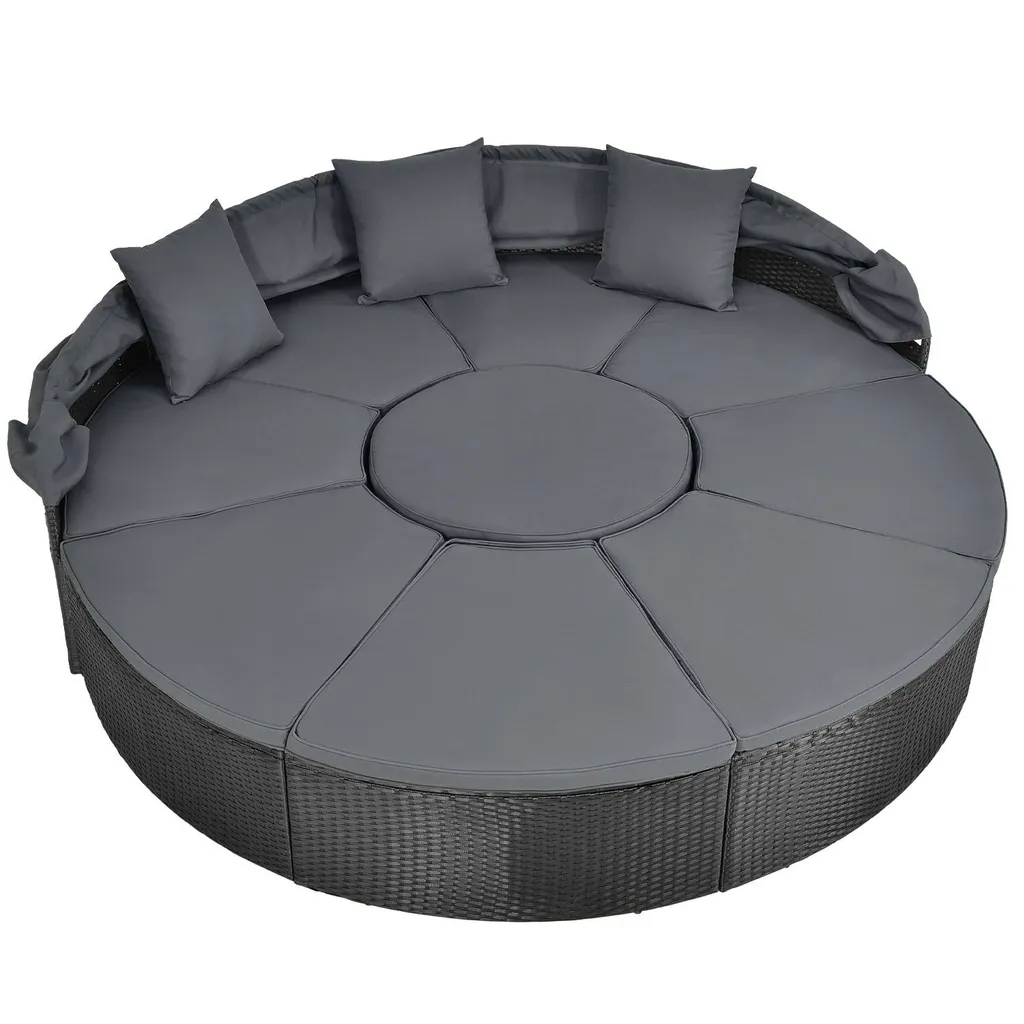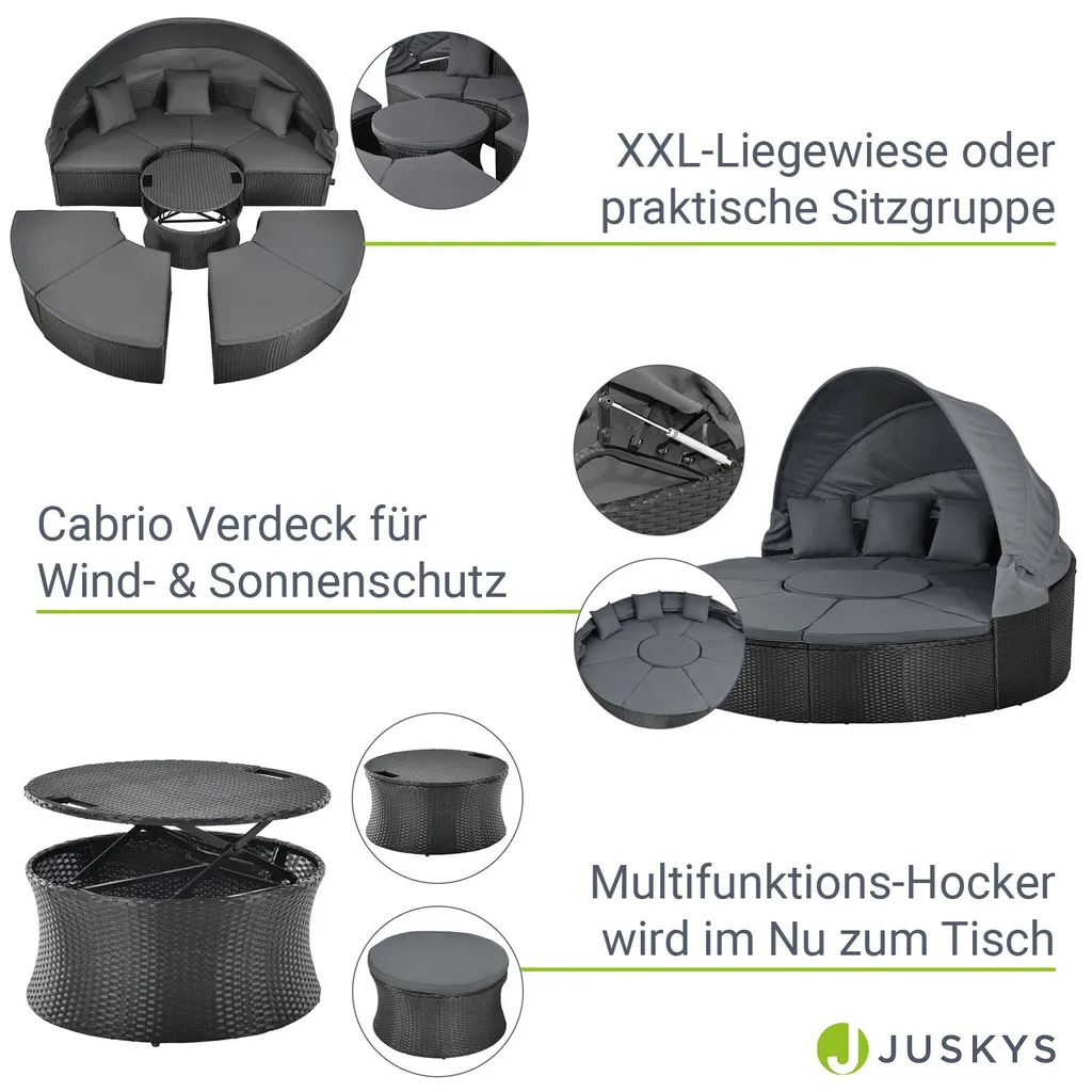 Juskys 2in1 XXL Polyrattan Sonneninsel & Sitzgruppe Puerto Plata – Set Mit Dach, Kissen, Tisch Und Hockern – Liegeinsel Lounge Wetterfest Garten