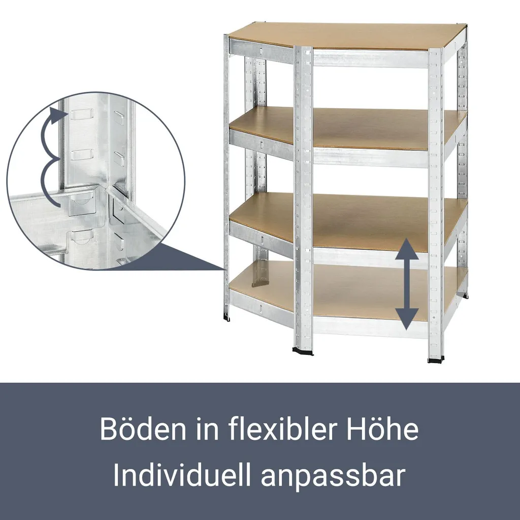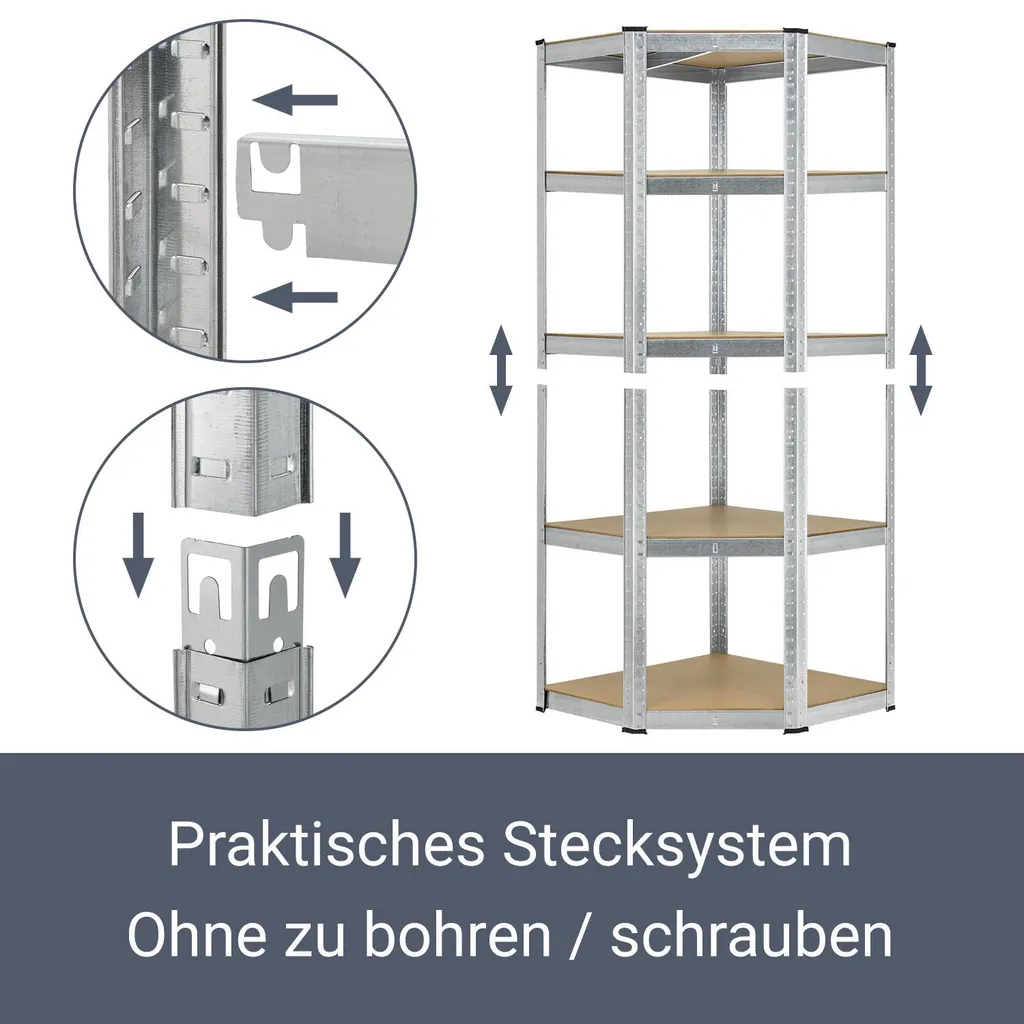 Juskys Eckregal Lageregal Corner Basic 180 X 70 X 40-70 Cm – 875 Kg – 5 Böden – Metall Verzinkt – Schwerlastregal Steckregal Kellerregal