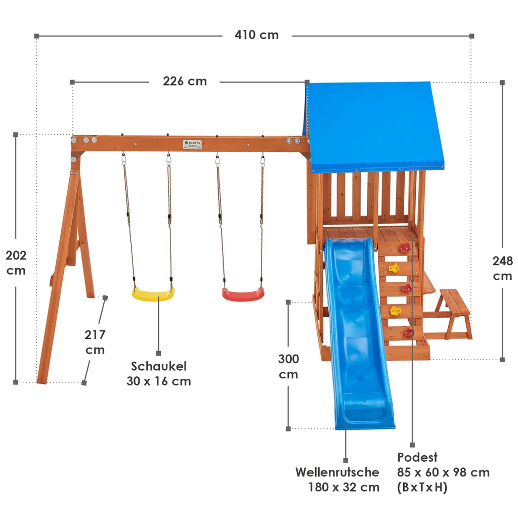 Juskys Spielturm Yannis – Klettergerüst Für Kinder Mit Rutsche, Schaukeln, Kletterwand & Zubehör – Kletterturm Für Outdoor Aus Holz Ab 3 Jahren