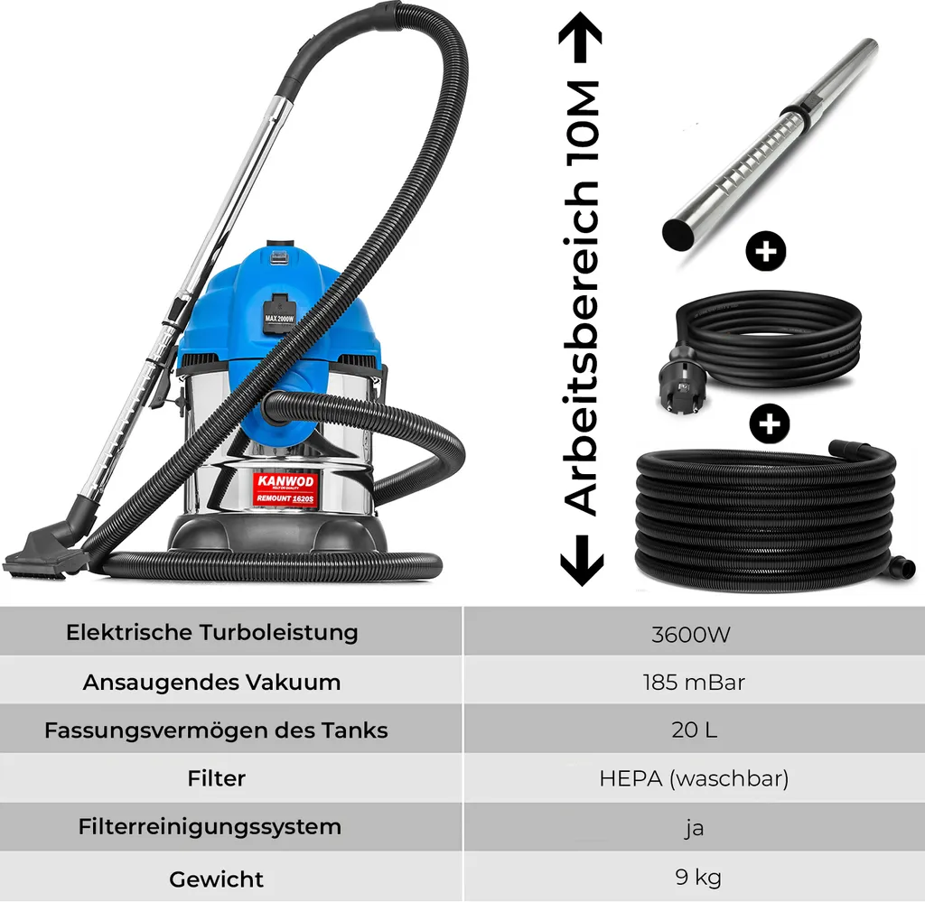 KANWOD 1620S 3600 W / 1600 W Multifunktions-Nass- Und Trockensauger 20 Liter