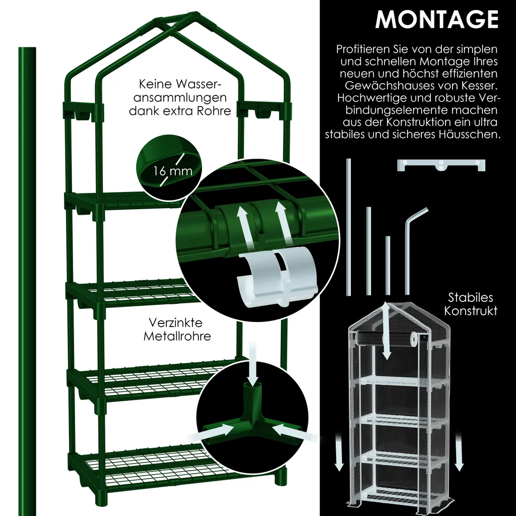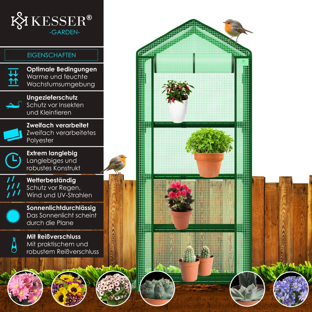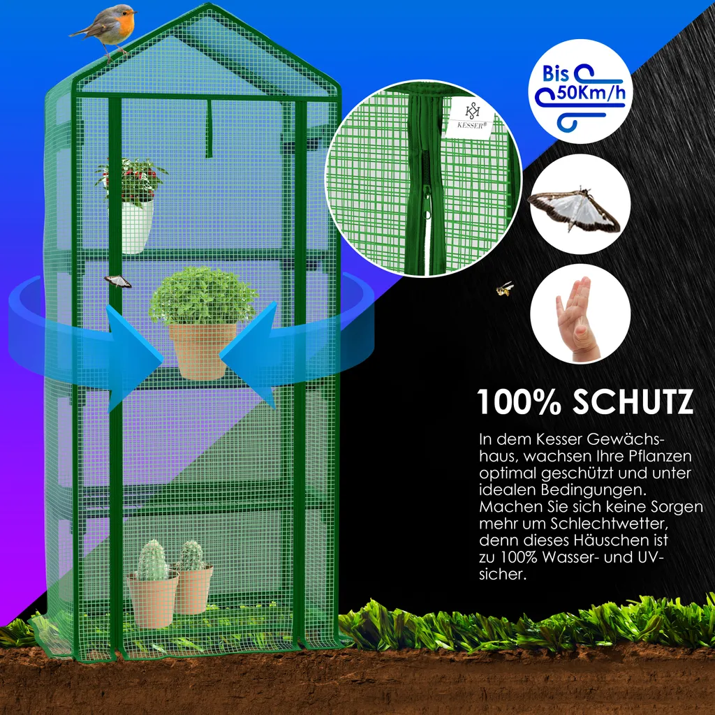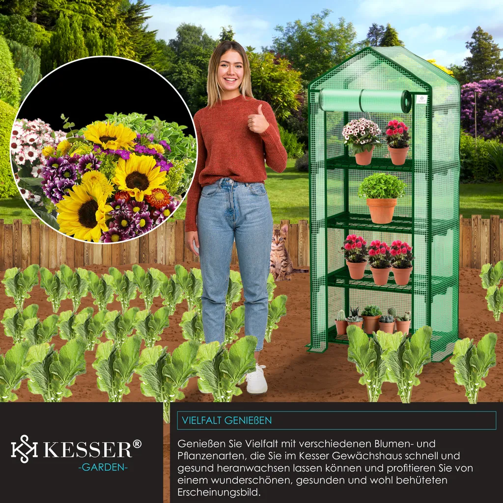 KESSER® Premium Foliengewächshaus Gewächshaus Mit 4 Etagen – 69 X 50 X 158 Cm Treibhaus Mit 4 Regalen – Platzsparend, Hochwertiges Anzuchthaus Garten Balkon Stabil & Einfach Zu Montieren, Farbe:Grün, Größe:4 Etagen