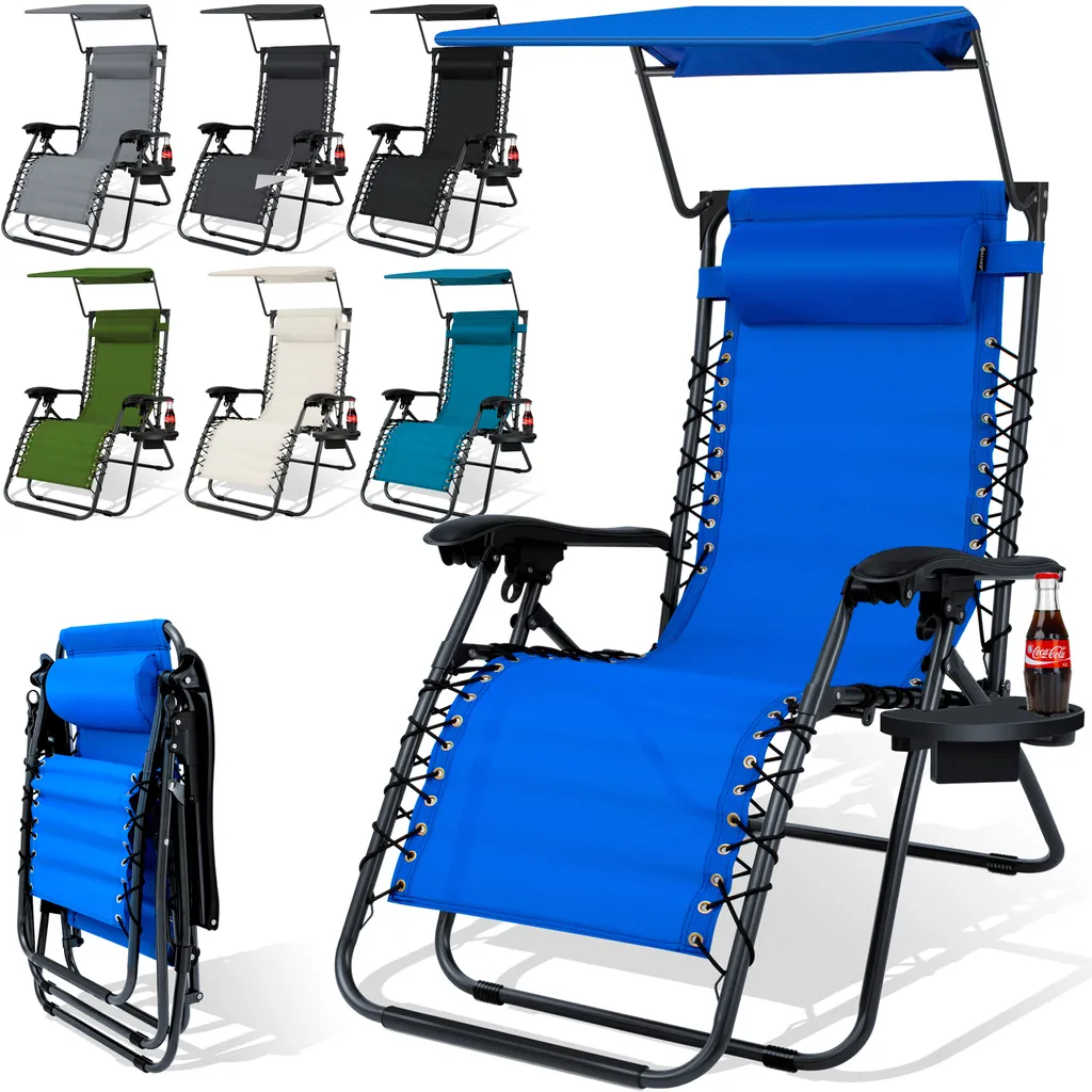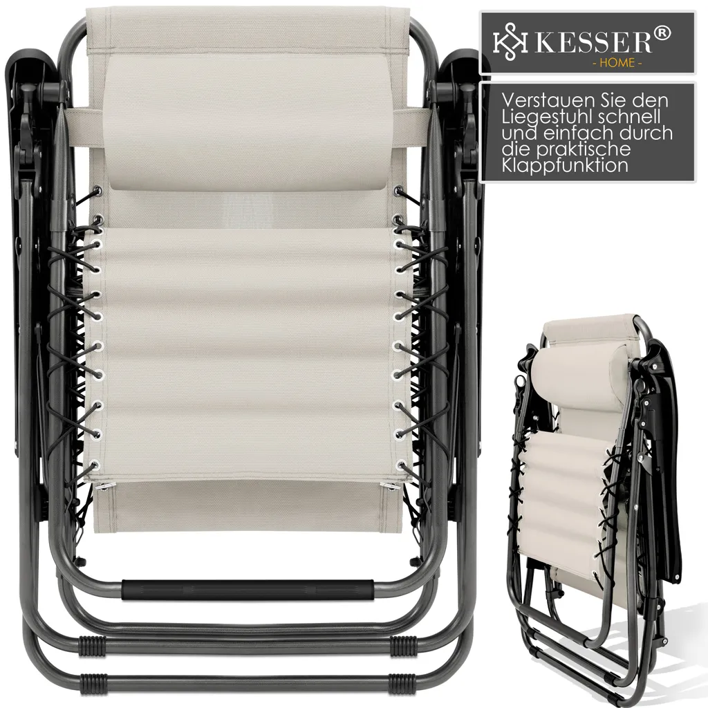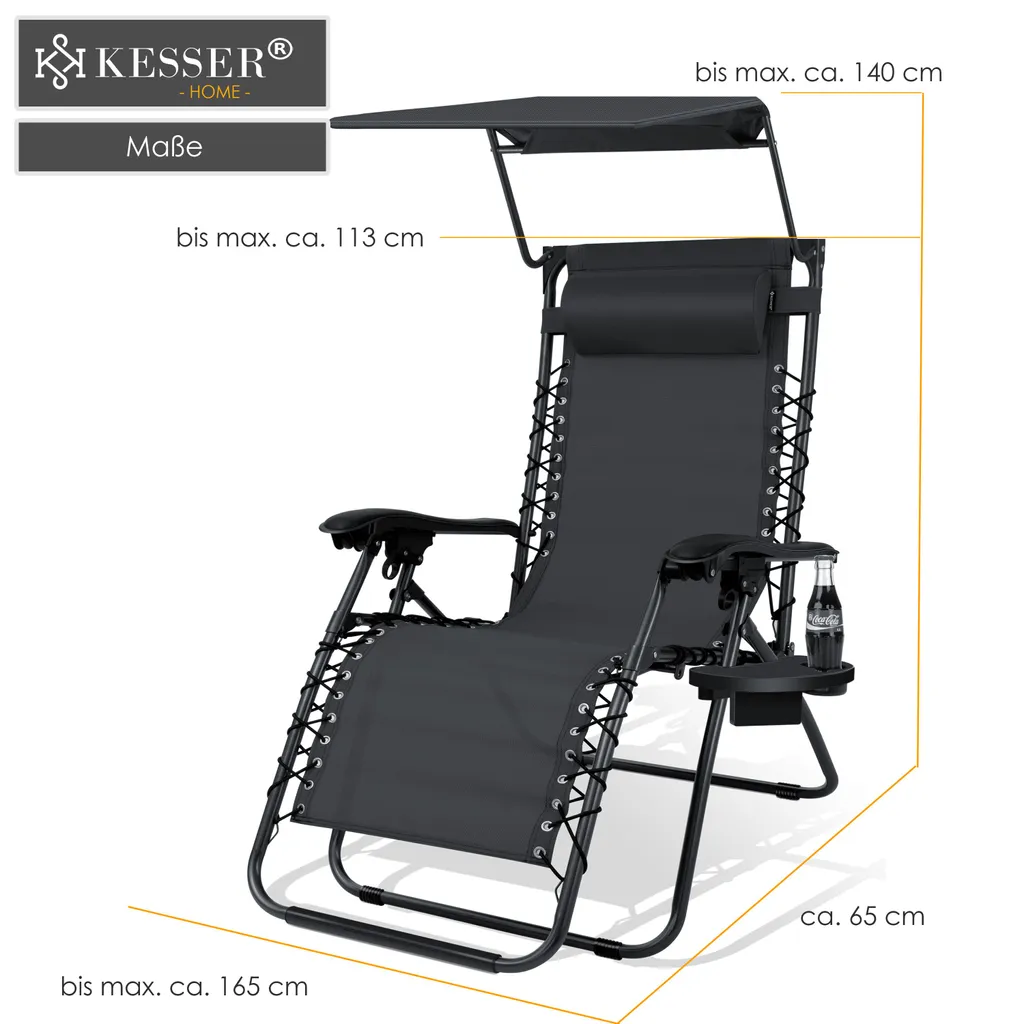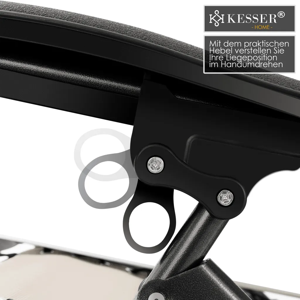 KESSER® – Sonnenliege Liegestuhl Mit Sonnendach Getränkehalter | Verstellbar Rückenlehne | Abnehmbares Kopfkissen Kopfpolster| Klappbar | Stahlrahmen | Garten Liege Hochlehner | Gartenstuhl, Farbe:Beige