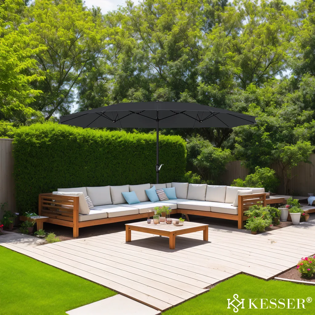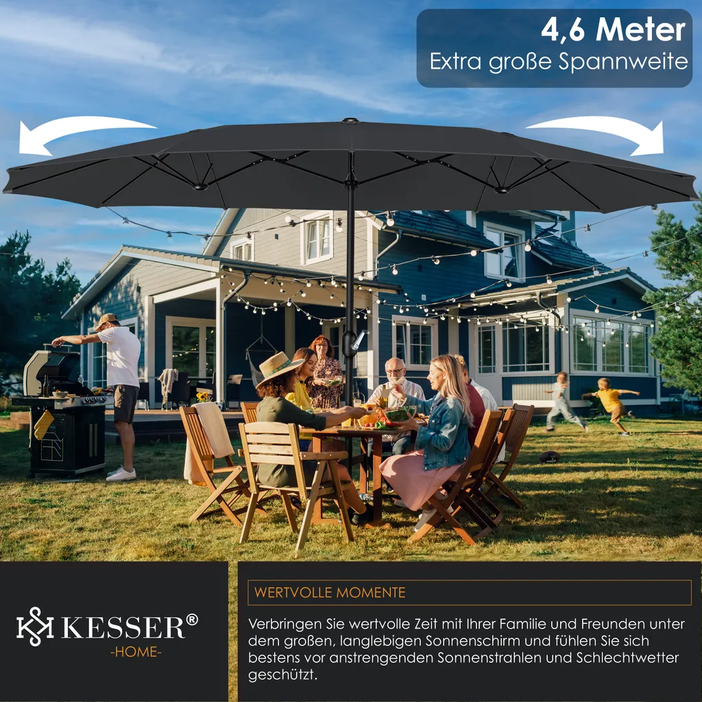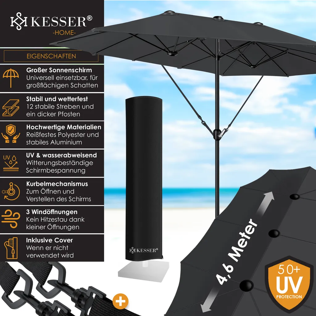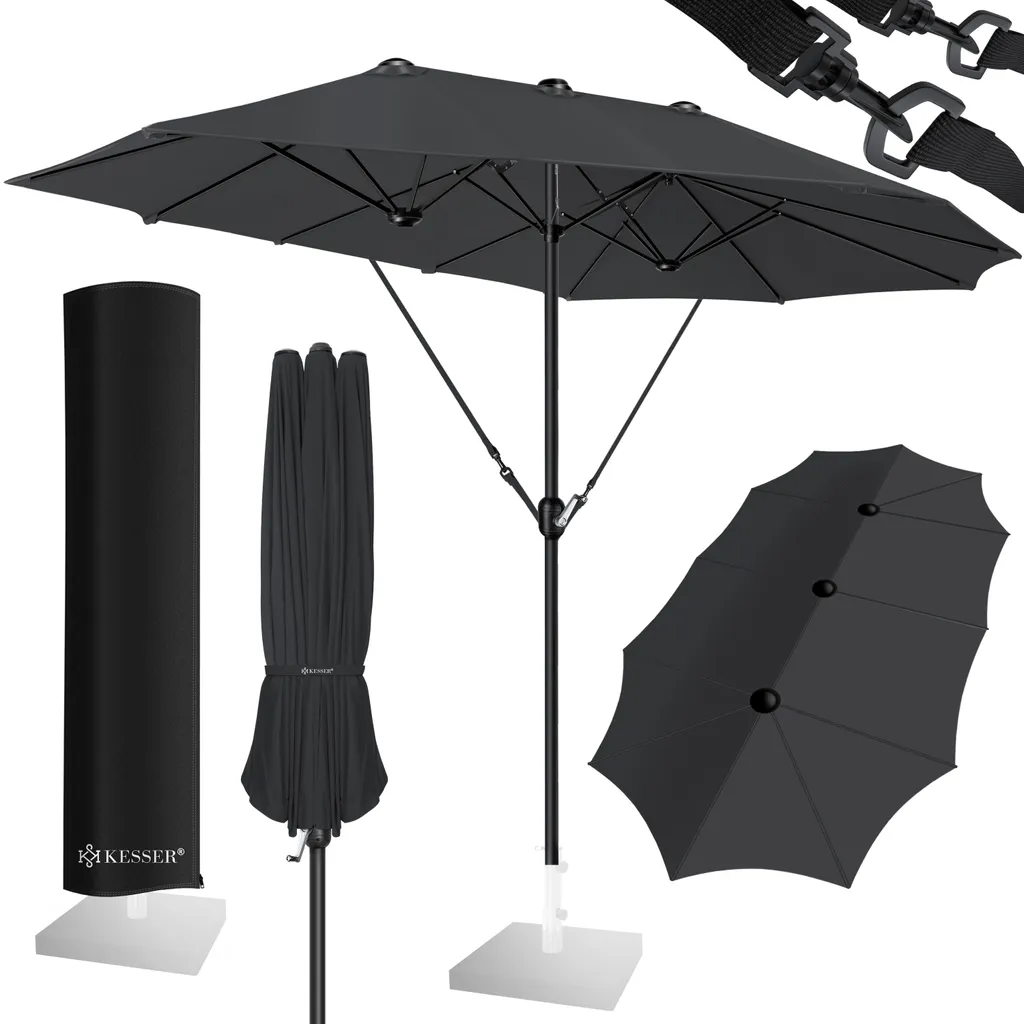 KESSER® Sonnenschirm Doppelsonnenschirm Inkl. Abdeckung + Windsicherung | Gartenschirm | Marktschirm | Terrassenschirm Mit Handkurbel | Oval | Aluminium | UV-beständig | Wasserabweisend, Farbe:Anthrazit