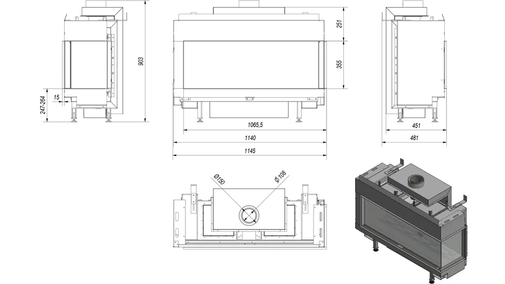 Kratki Gaskamin LEO 100 Rechts Erdgas ∅ 100/150 9 KW