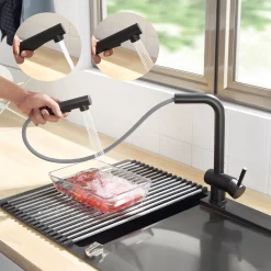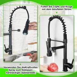 CECIPA Wasserhahn Küche 360° Drehbar Küchenarmatur Edelstahl Spültischarmatur Küche Matt Schwarz