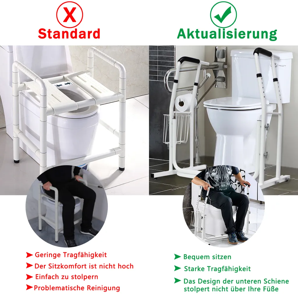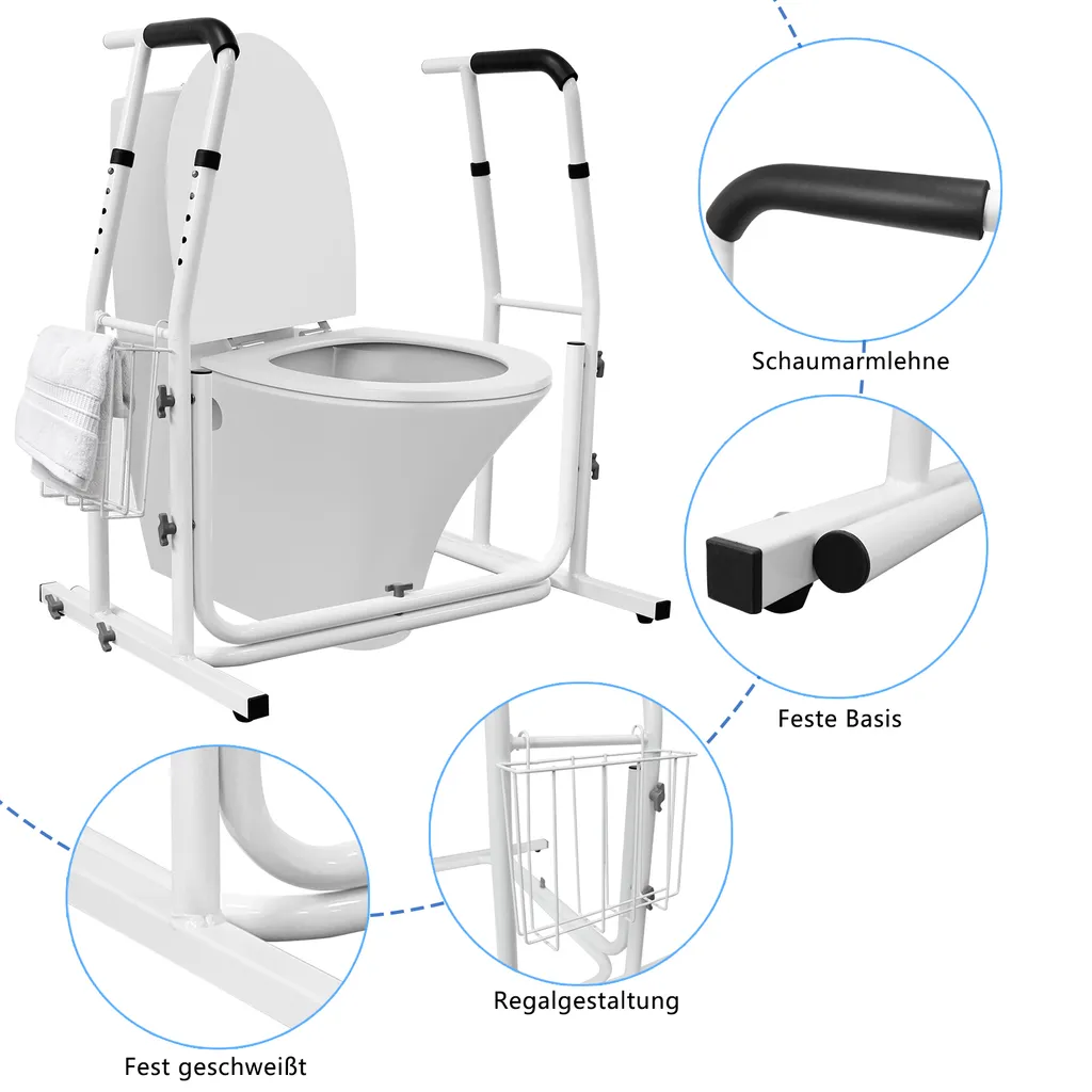 LARS360 Mobile Aufstehhilfe Toiletten Höhenverstellbar Mit Ablagekorb – Toiletten Stützgestell Haltegriff Höhenverstellbar Für Bad, Belastbar Bis 200 Kg