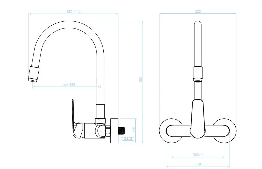Loge Bewegte Auslauf Küchenarmatur Armatur Einhebelmischer Wandarmatur Schwarz