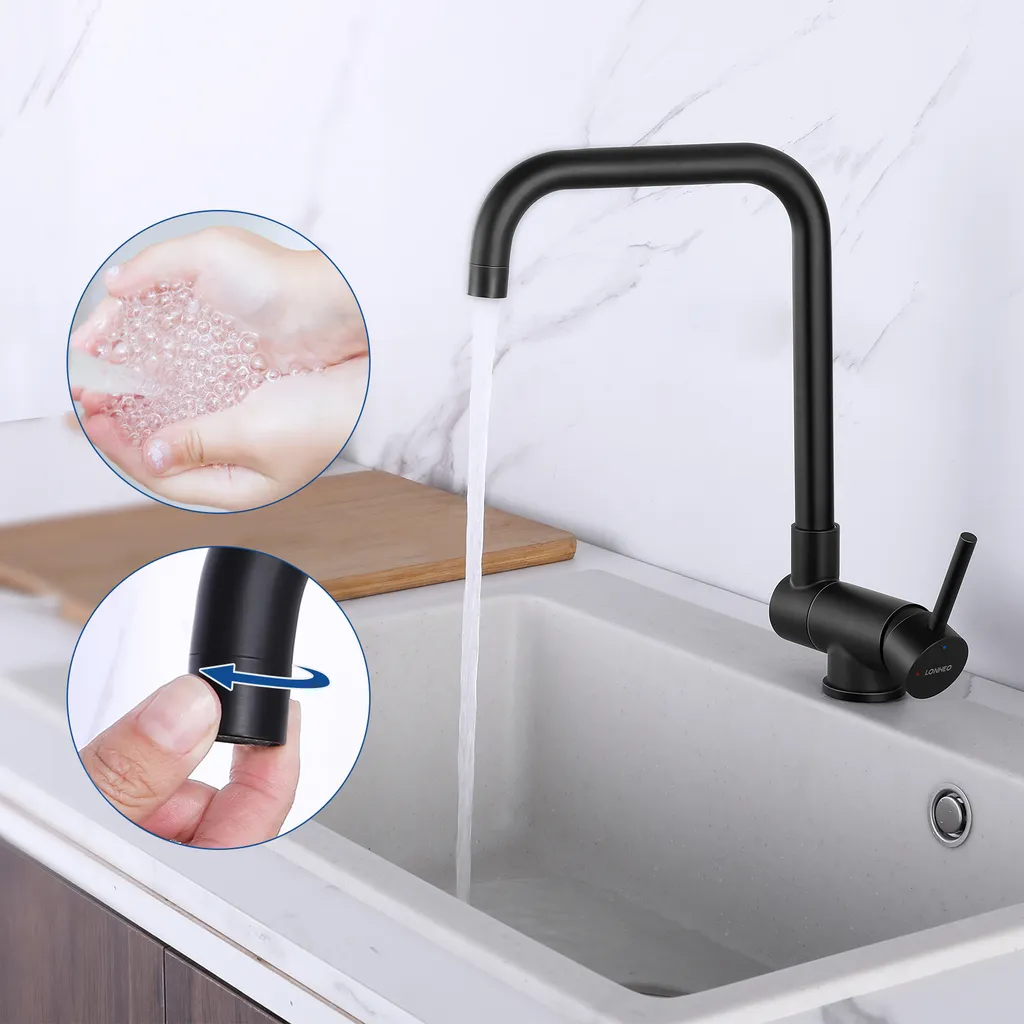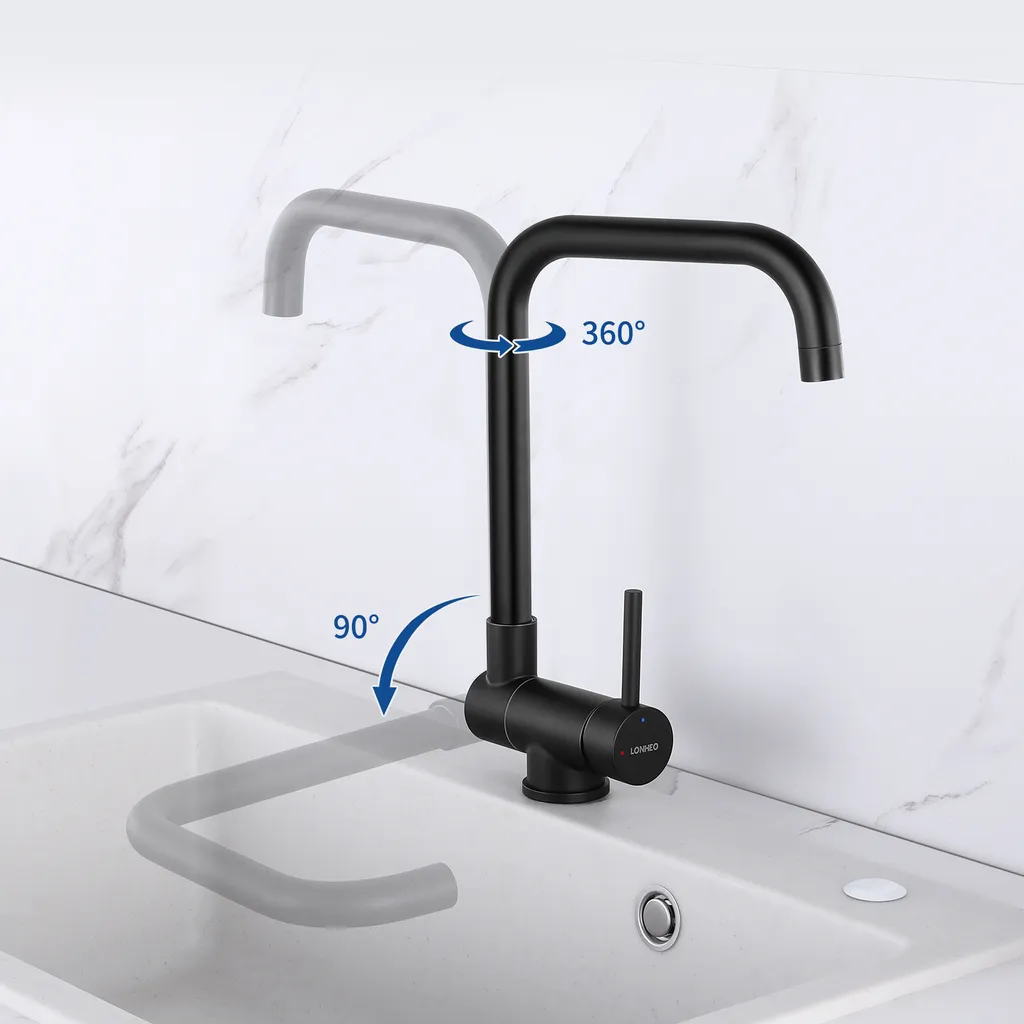 Lonheo Hochdruck Wasserhahn Küche Umklappbar, Spültischarmatur Einhebelmischer 360° Drehbar Aus Edelstahl, Vorfenster Küchenarmatur Schwarz Mit Abnehmbarem Perlator
