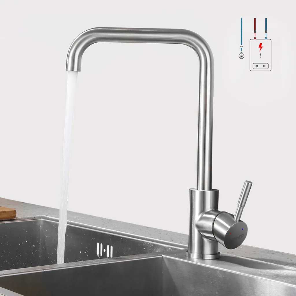 Lonheo Niederdruck Wasserhahn Küche Armatur Aus Edelstahl | 360° Schwenkbar Küche Mischbatterie Einhebelmischer Für Kaltwasser Und Einen Wasserboiler Konzipiert