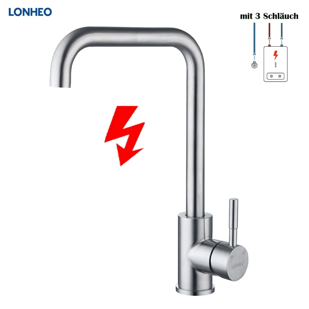 Lonheo Niederdruck Wasserhahn Küche Armatur Aus Edelstahl, 360° Schwenkbar Küche Mischbatterie Einhebelmischer Für Kaltwasser Und Einen Wasserboiler Konzipiert
