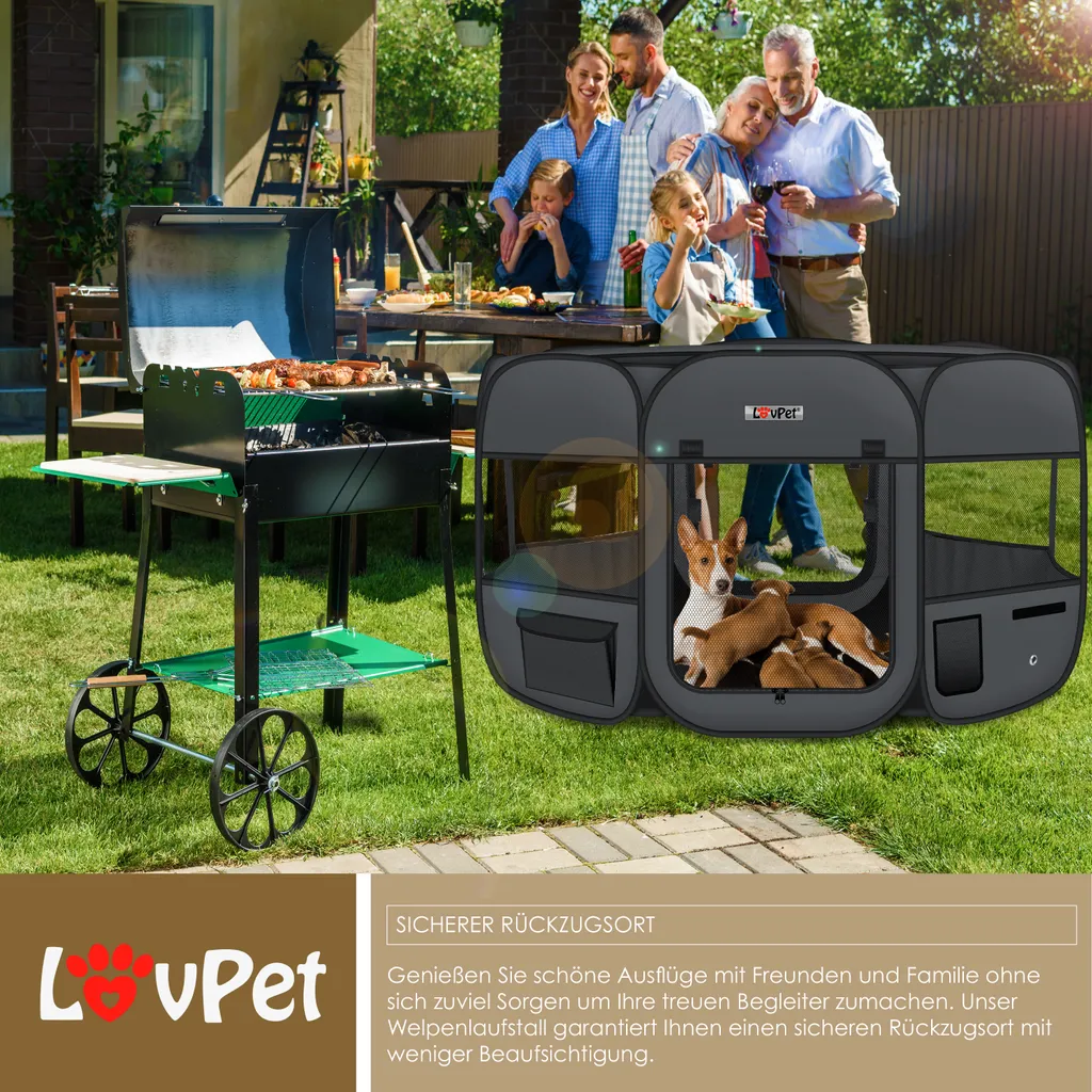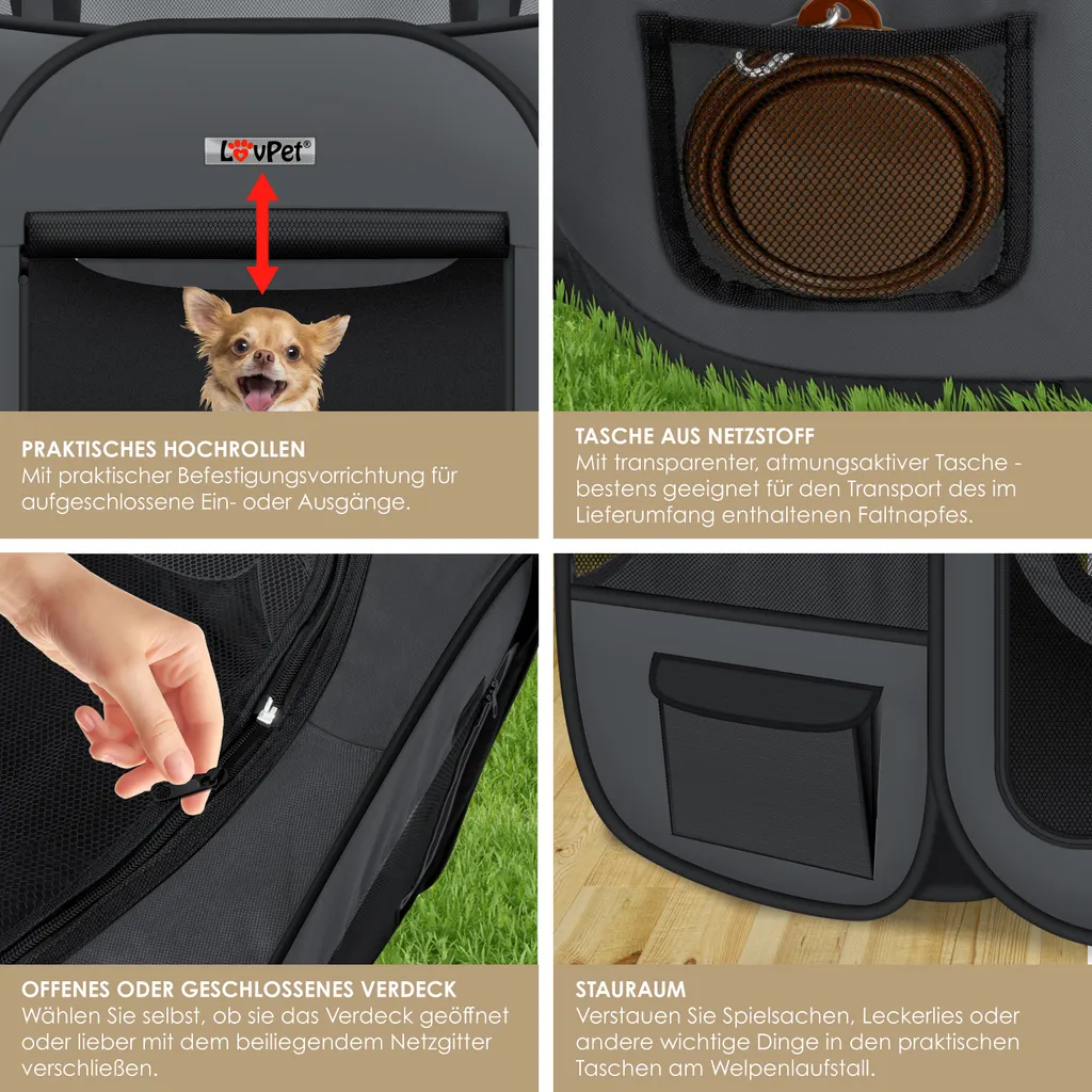 LOVPET® Welpenlaufstall Tierlaufstall Faltbar Für Kleintiere Hunde, Katzen Inkl. Hundenapf Hundelaufstall Freigehege Oxfordgewebe Pop-up System Indoor & Outdoor, Farbe:Anthrazit / Schwarz