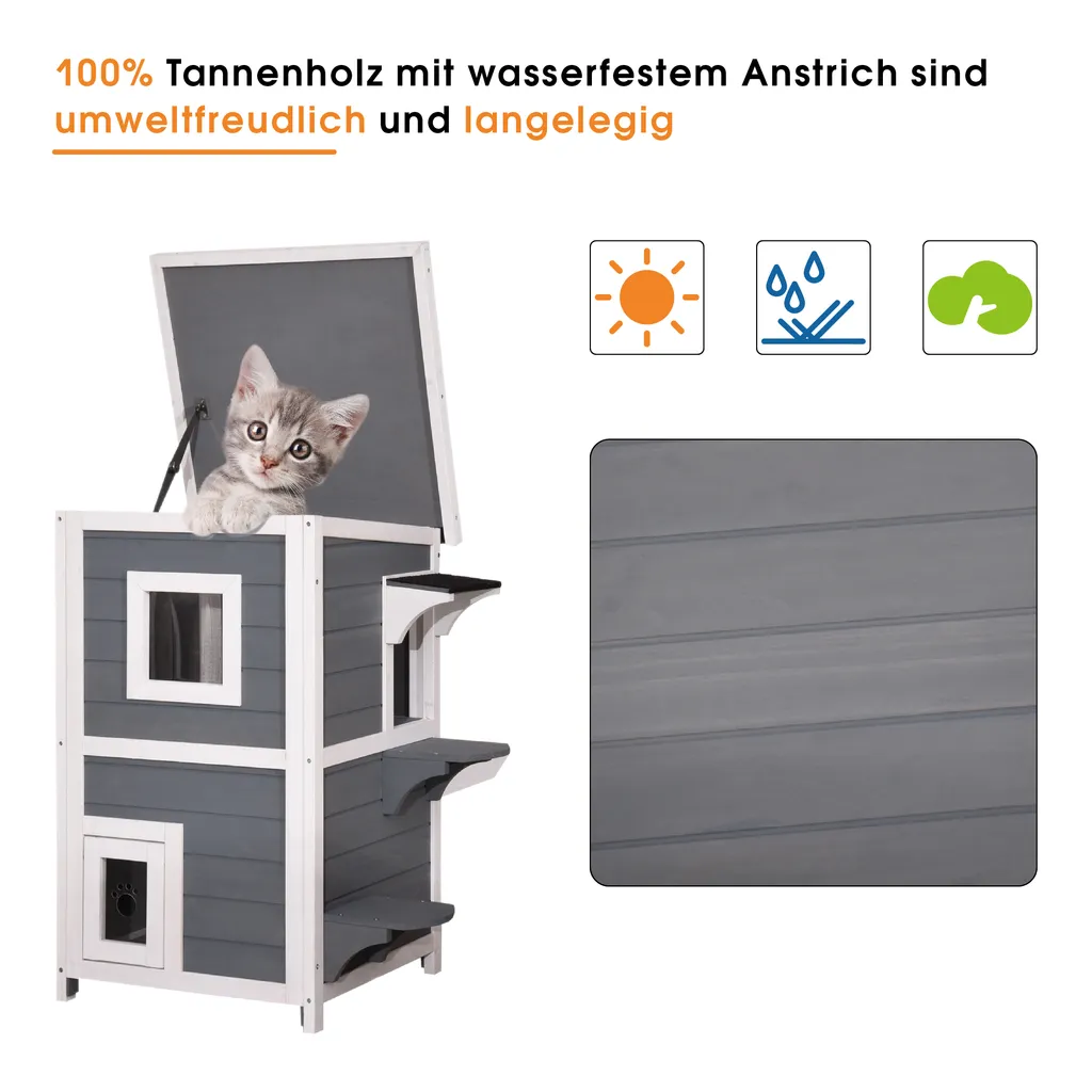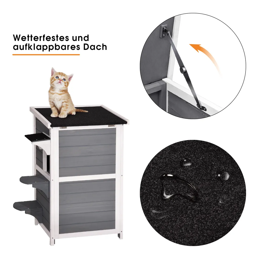 Lovupet Katzenhaus Katzenvilla Isoliert Katzenhütte 2 Etagen Wetterfest 0508EY