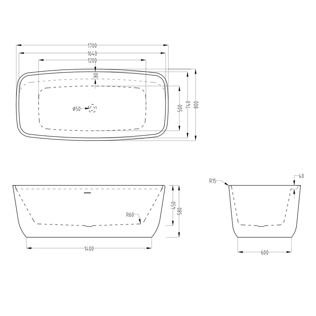 Mai & Mai Freistehende Acryl-Badewanne 170x80cm Rechteckig Inkl. Armatur Und Handbrause, Farbe: Weiß, Material: Sanitäracryl V612MA