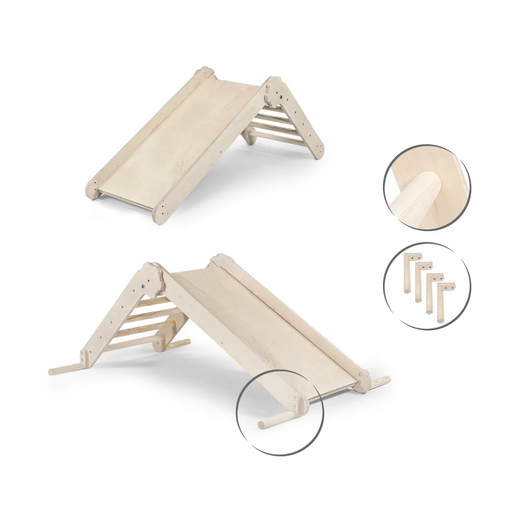 MAMOI® Klettergerüst Indoor, Kletterdreieck Mit Rutsche Aus Holz, Baby Kinder Klettern, Kletterturm Mit Rutschbrett, Kletterbogen Mit Kinderrutsche, Holzbogen Für Spielplatz Ab 1/2/3 Jahre