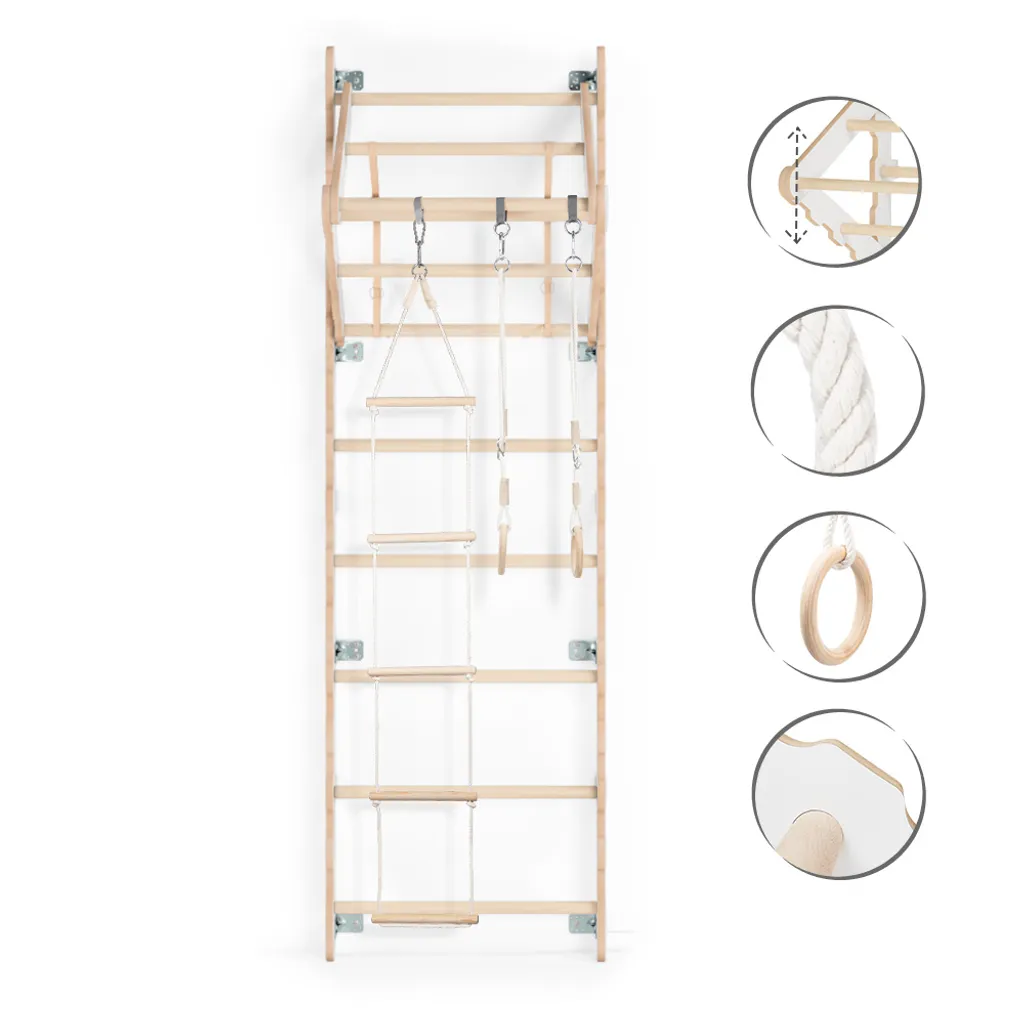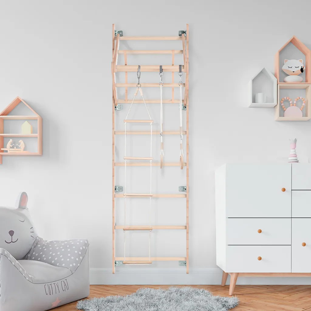 MAMOI® Klettergerüst Indoor, Sprossenwand Für Kinderzimmer, Turnringe Kinder Für Klettern, Kletterwand Und Spielgeräte, Turngeräte Mit Klimmzugstange Für Drinnen, Sportgeräte Ab 3 Jahren