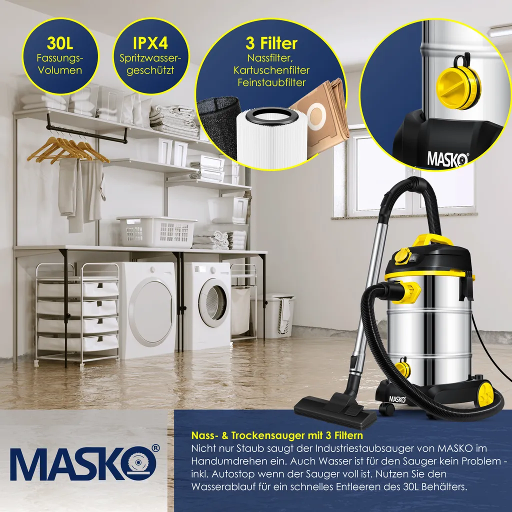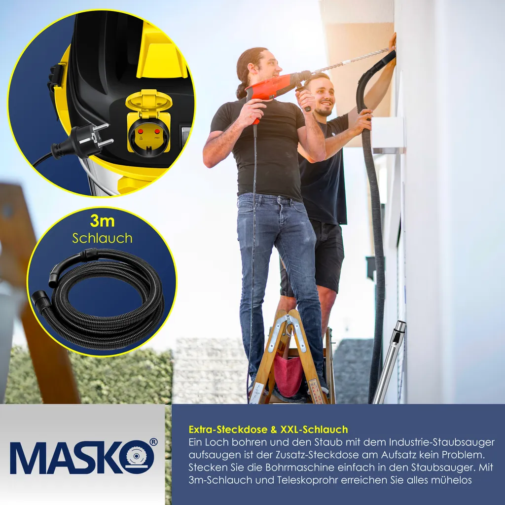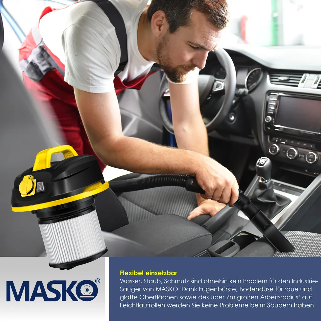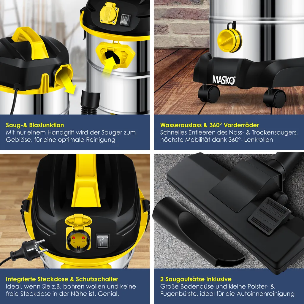 Masko® Industriestaubsauger Staubsauger Nass Trocken Sauger Edelstahl Max. 1800W, Farbe:Gelb