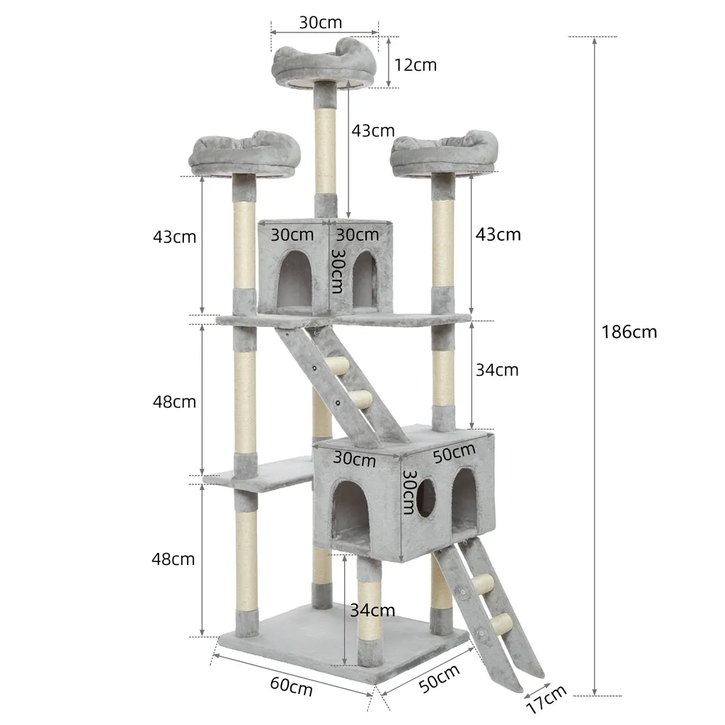 Meerveil Kratzbaum XL XXL, Großer Kletterbaum Mit Kratzsisal, Stabiler Kratzbaum Katzenbaum, Katzenspielhaus Mit Kratzsisal, Säulen Mit Natürlicher Sisal Umwickelt