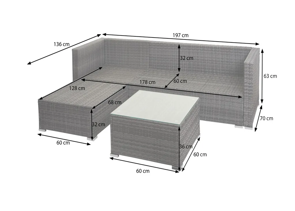 Mendler Poly-Rattan Garnitur HWC-F57, Balkon-/Garten-/Lounge-Set Sofa Sitzgruppe Schwarz, Kissen Dunkelgrau Ohne Deko-Kissen
