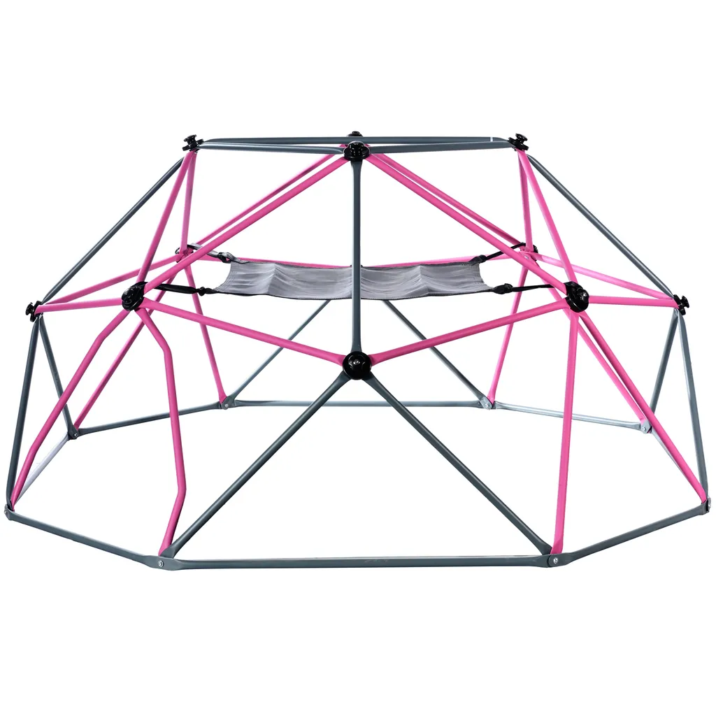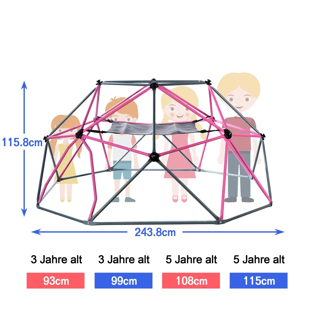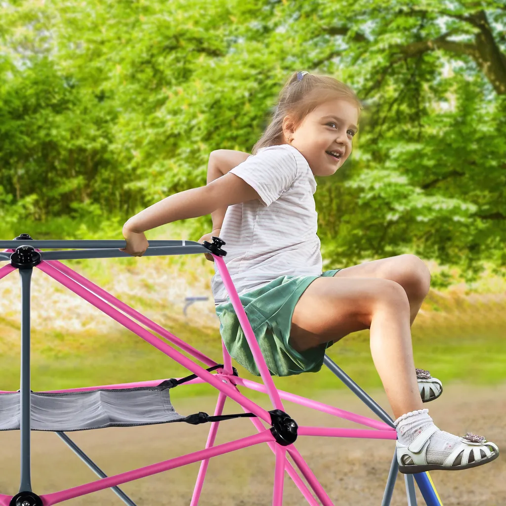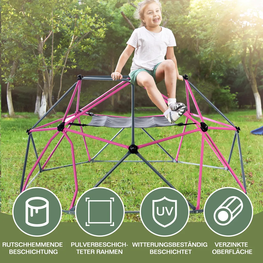 Merax 8FT Klettergerüst Ø 244cm Kletterkuppel Kinder Kletterleiter, Klettergerüst Mit Hängematte, 375 Kg Belastbar, Rosa-Schwarz