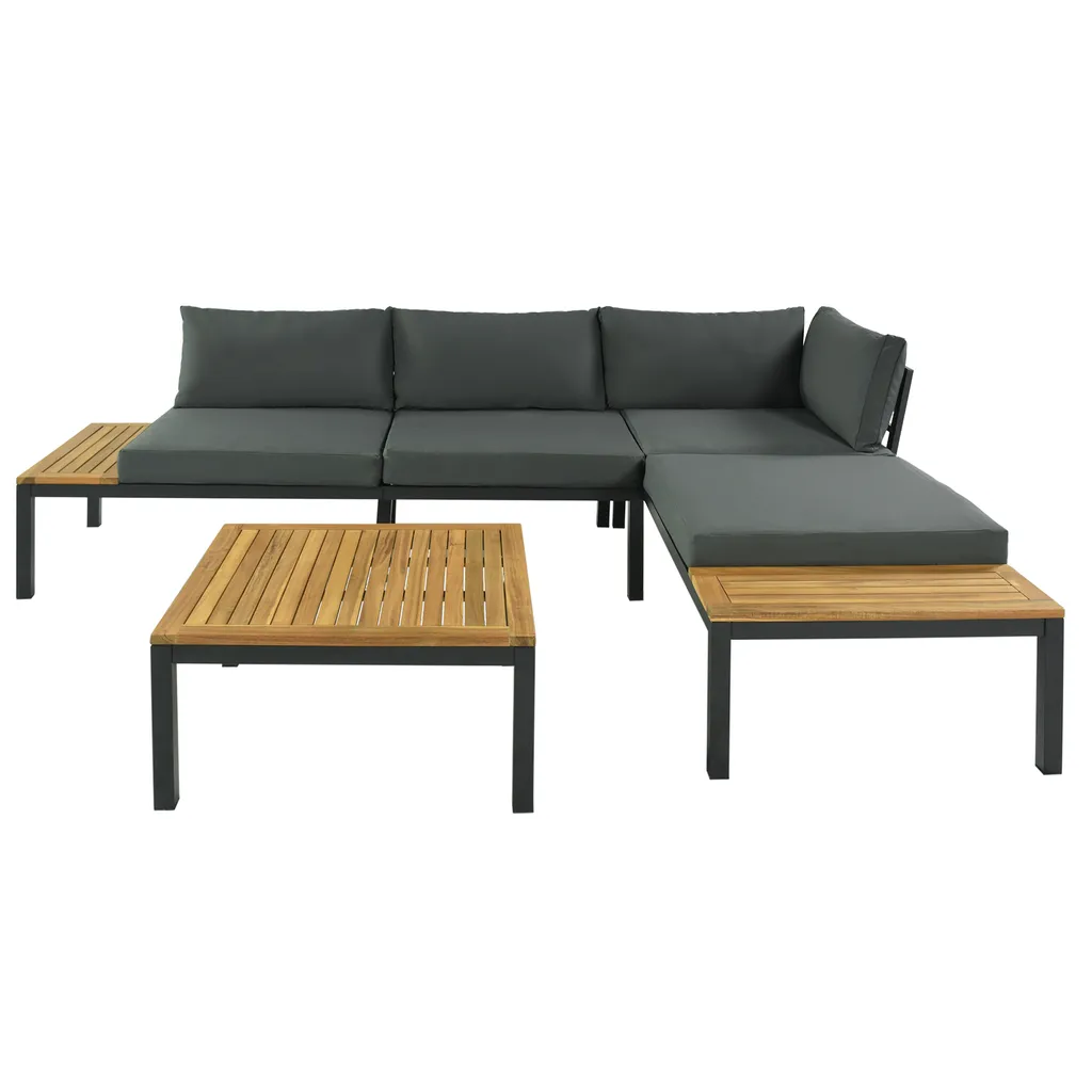 Merax Loungeset 4-teilig Gartenmöbelset Sitzgruppe Aus Akazienholz Für 4 Personen, Gartengarnitur Aus Holz Und Stahlrahmen Mit Kissen Und Tisch, Balko