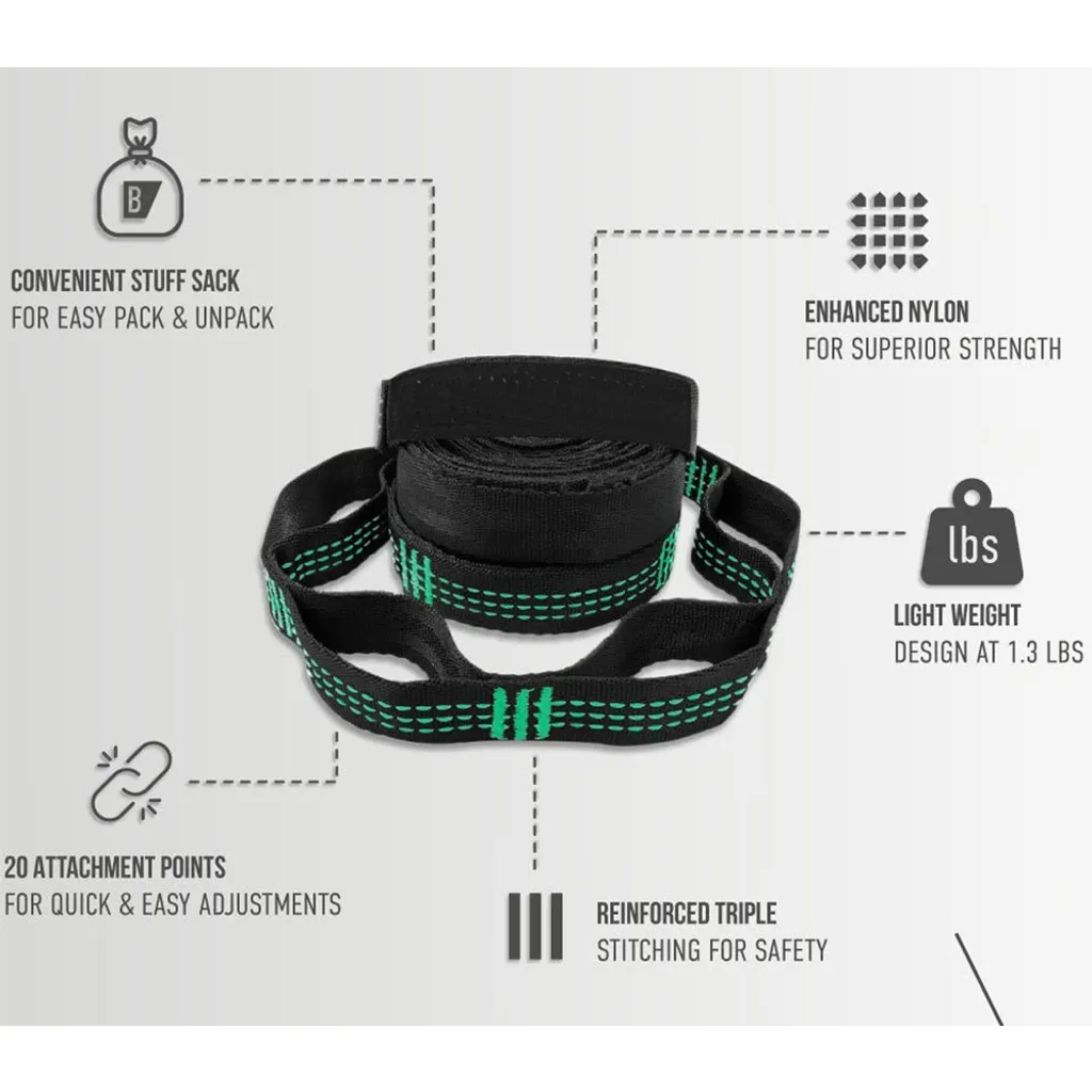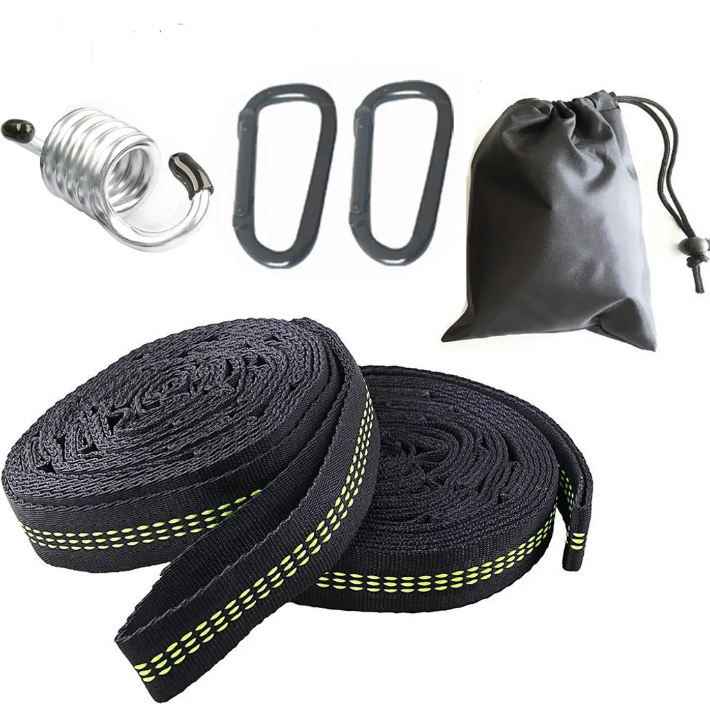 Mmgoqqt Hängemattenbefestigung, Schaukelbefestigung, Baum-Aufhängeset, 3 M X 2,5 Cm, Max. 500 Kg, 15 Stück, 1 Ring, 2 Karabiner, Hängesessel-Zubehör, Stahlfedern Für Camping, Wandern, Outdoor-Reisen