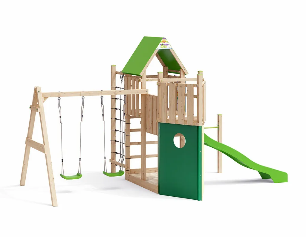 MONSTERSPASS Kon Tiki Neo Kletterturm Spielturm Schaukel Sandkasten Kletterstange Rutsche