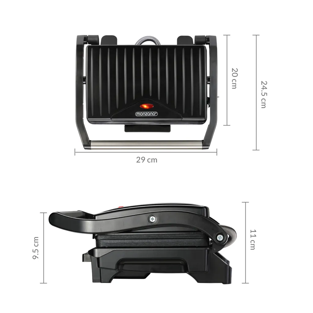 Monzana Kontaktgrill Antihaftbeschichtete Grillplatten Herausnehmbare Auffangschale Cool-Touch-Griff 1500 W Panini Toaster Grill Sandwichmaker Schwarz