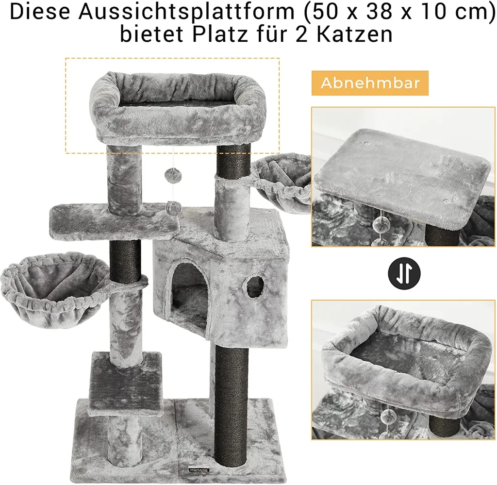 MSmask Kratzbaum Klein Katzenkratzbaum 120cm Kletterbaum Katzenbaum Mit Extra Dicke Stämme Große Aussichtsplattform, Verstellbar Grundplatte, Liegemulde, Stabil