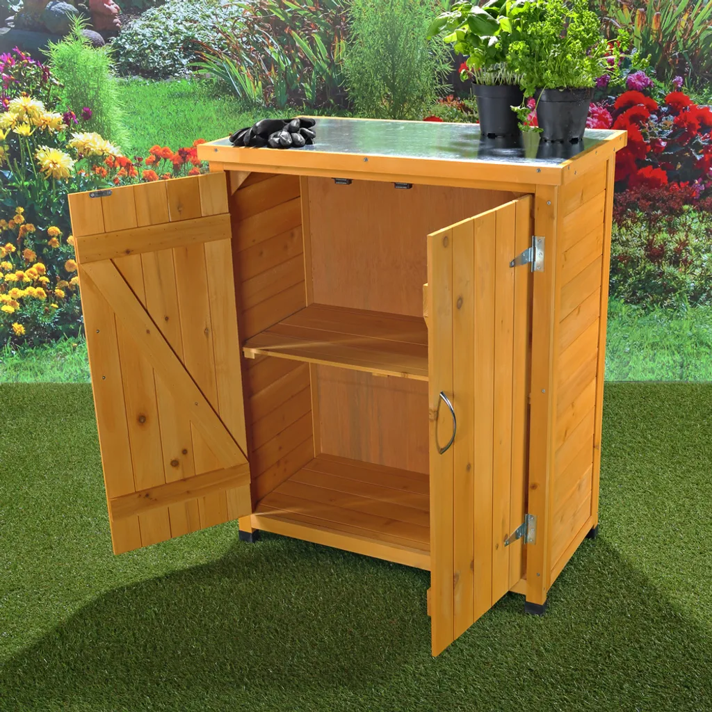 Mucola Geräteschrank Gerätehaus Gartenschuppen Schrank Schuppen Gartenschrank + 2 Türen Schrank Pflanztisch Terrassenschrank Mehrzweckschrank