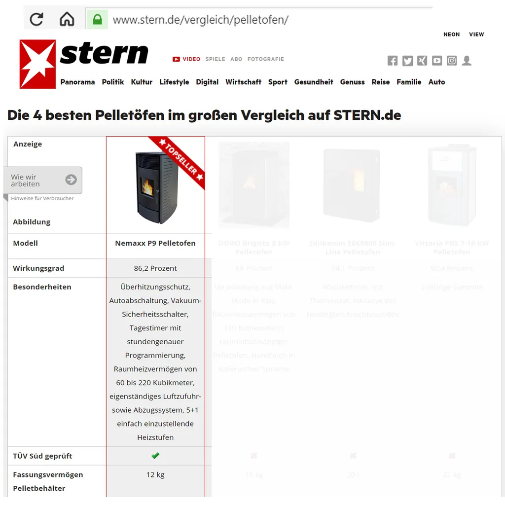 Nemaxx P9 Pelletofen Pelletkamin Pelletkaminofen 9 KW Kaminofen Heizofen Pellet Ofen Kamin Pelletheizung Heizung Heizgerät Kaminheizung Pellets – Rot – WiFi-Ready