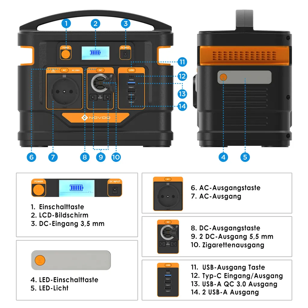 NOVOO Tragbare Stromerzeuger Power Station Solar Stromgenerator Solar Powerbank, 296Wh 80000mAh Mobiler Energiespeicher,230AC Steckdose,PD 45W Type-C,Solar Generator Für Notfall Campin