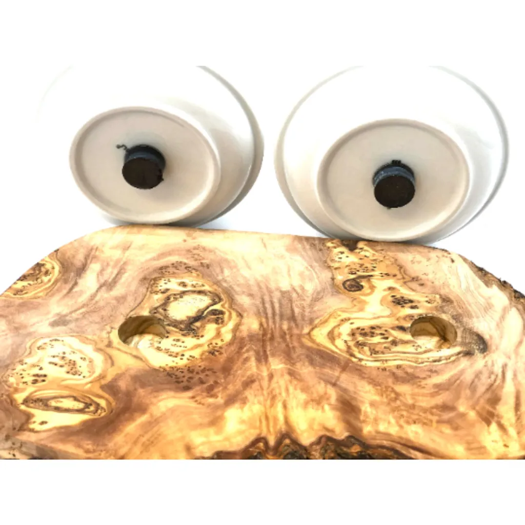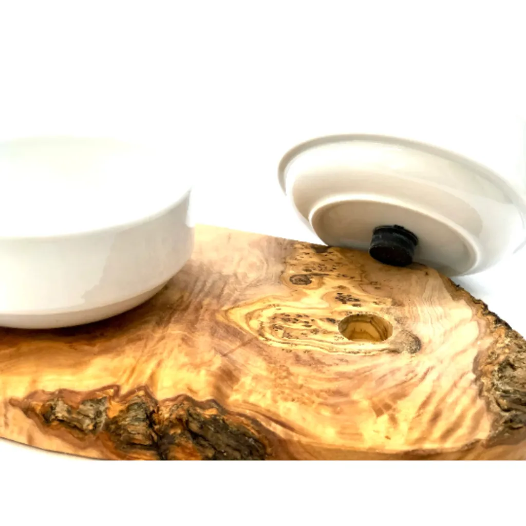 Olivenholz Erleben Doppel-Futterstation RUSTY (2x 0,4 Liter Porzellanschale) Für Kleinere Hunde Oder Katzen