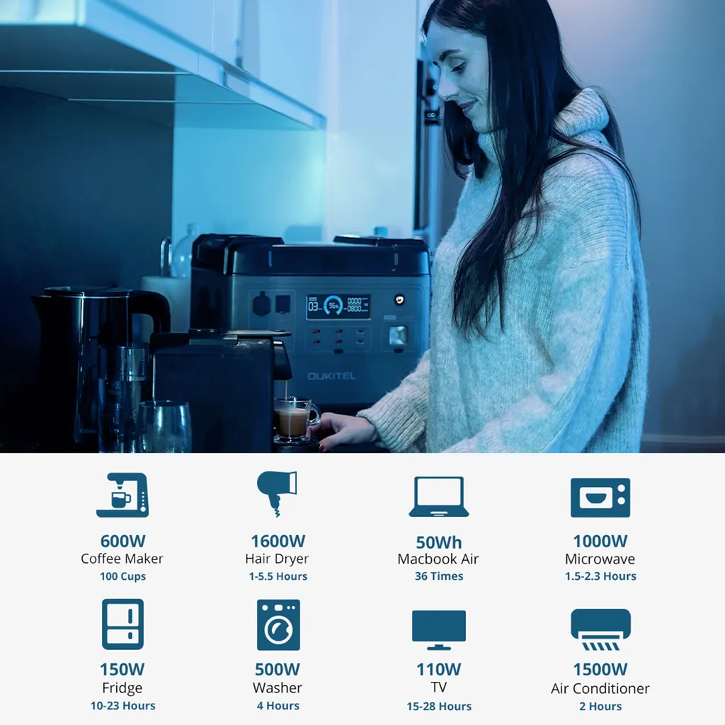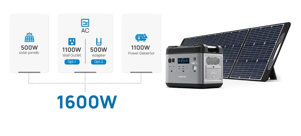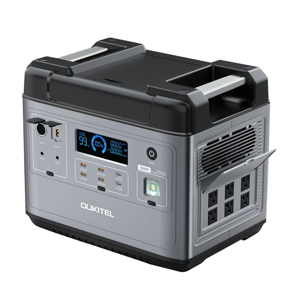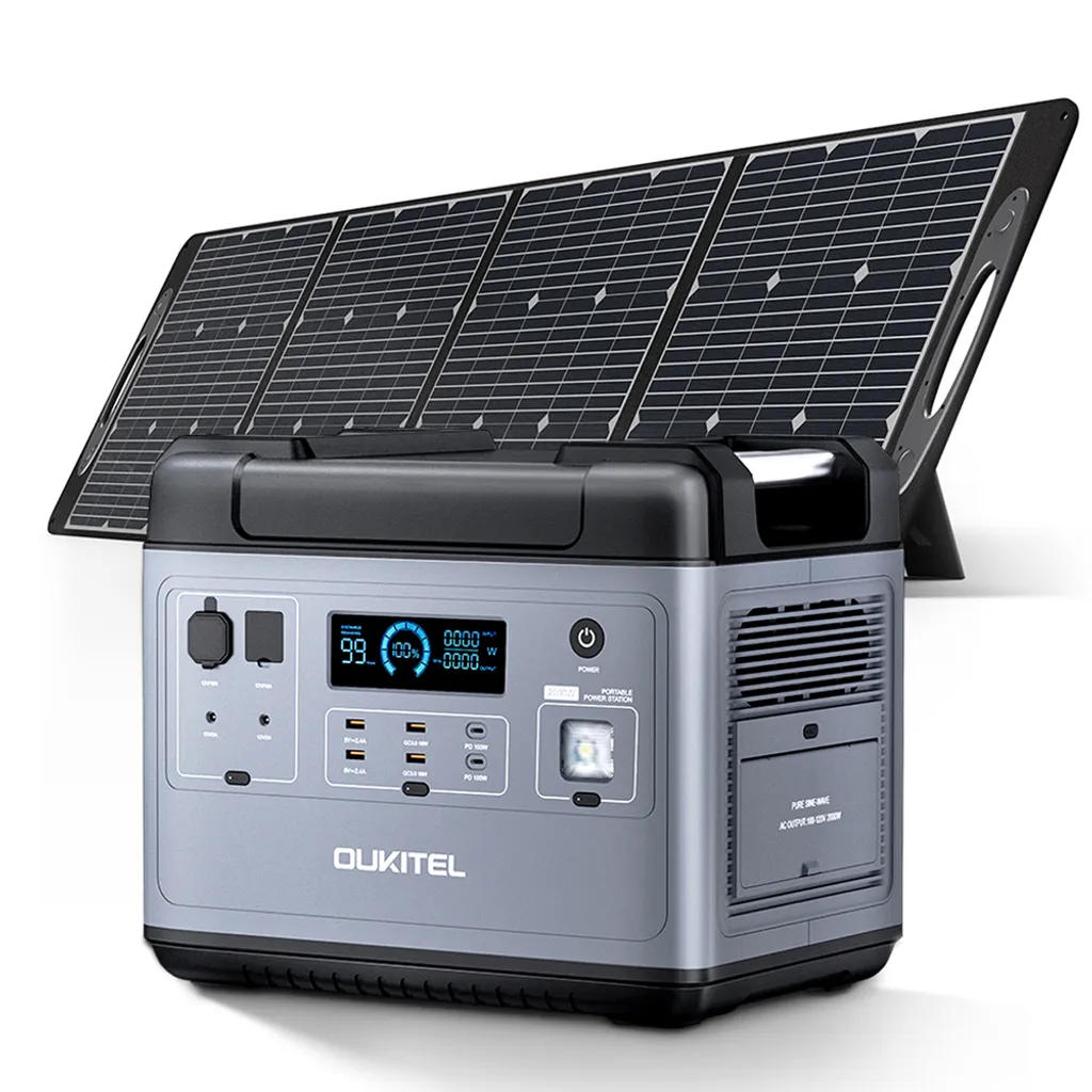 OUKITEL P2001E 2000W (4000W Peak) Stromerzeuger Power Station Mit 200W Solarpanel PV200, 2000Wh Solargenerator 625000mAh Mobiler Stromspeicher Power Station, Sicheres LiFePO4-Batterie PD100W QC3.0 Solar Generator Für Notstrom Camping Wohnmobile Zu Hause