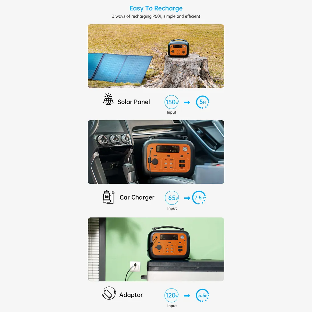 OUKITEL P501E 500W (1000W Peak) Stromerzeuger Power Station 505WH Tragbare Stromgenerator Solargenerator Mobiler Stromspeicher Power Station Für Notstrom Camping Emergecy Zu Hause
