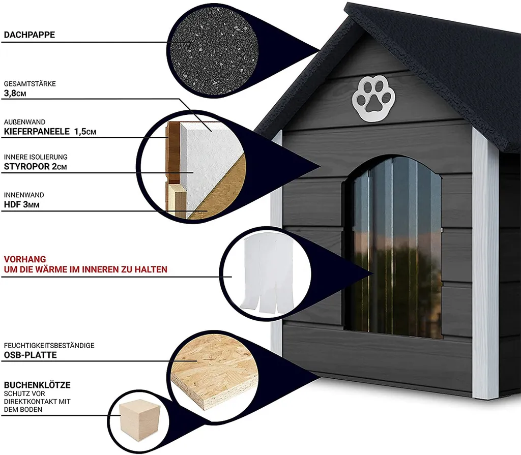Outentin Hundehütte Outdoor Winterfest Isoliert – Gemütliches Und Stilvolles Hundehaus XXL – Hundezwinger Draußen Für Große Hunde – Wasserdicht Hundehöhle – 104 X 90 X 74 Cm (Grau – Weiß)