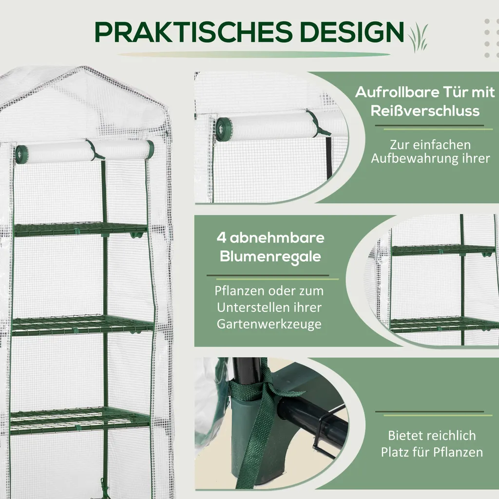 Outsunny Folien Gewächshaus Treibhaus Tomatenhaus Pflanzenhaus Frühbeet 4 Regalfächer Weiß 70 X 50 X 160 Cm