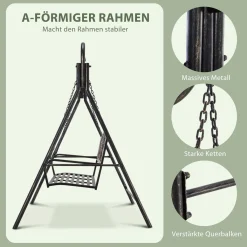 Outsunny Gartenschaukel Für 2 Personen, Hollywoodschaukel, Schaukelbank, Metall, Bronze, 167 X 123 X 175 Cm