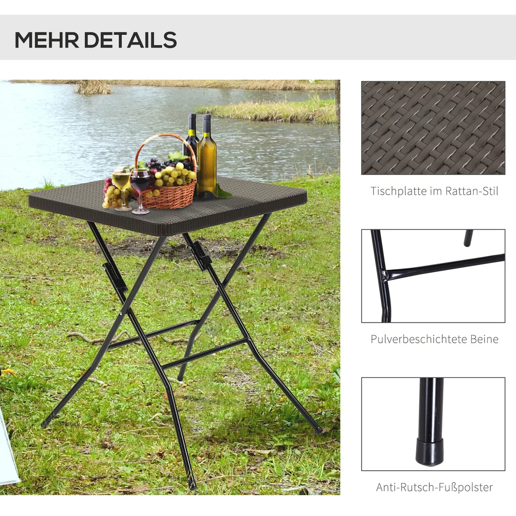 Outsunny Gartentisch Klappbar Falttisch Klapptisch Klappbar Beistelltisch Balkontisch Picknicktisch Campingtisch Kunststoff Metall Braun 60 X 60 X 74 Cm